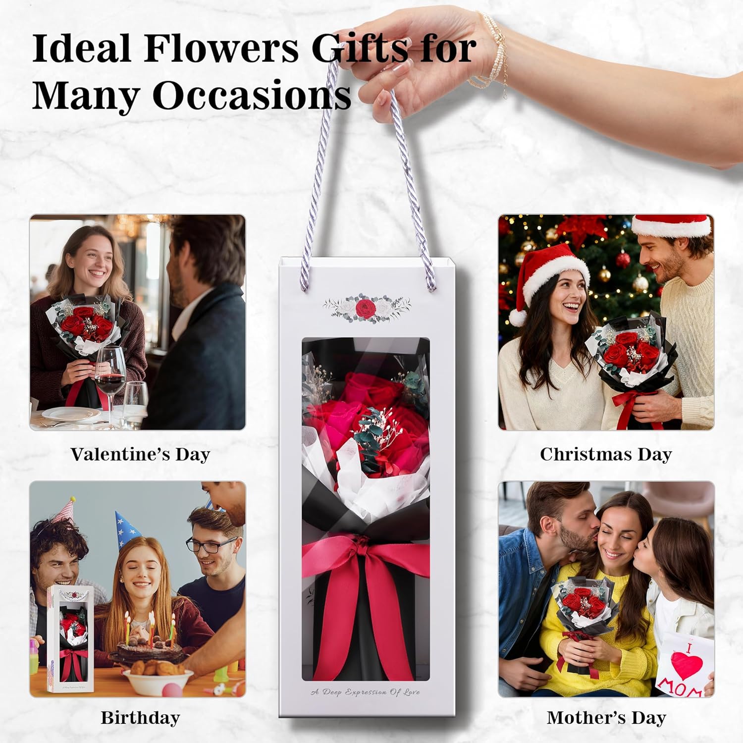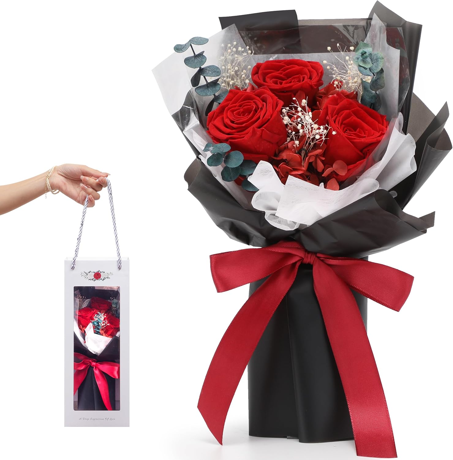 - Meaningful Preserved Flower Bouquet for Someone Special – This bouquet with 3 real preserved roses is designed as a romantic gift to express love and care. Whether it is for your wife, girlfriend, mom, grandma, daughter, sister, colleague or best friend, the long-lasting roses help you say “thank you”, “I love you”, “I miss you” or “I’m proud of you” in a gentle way. Perfect as gifts for women, gifts for her and thoughtful gifts for mom who deserves something beautiful and long lasting