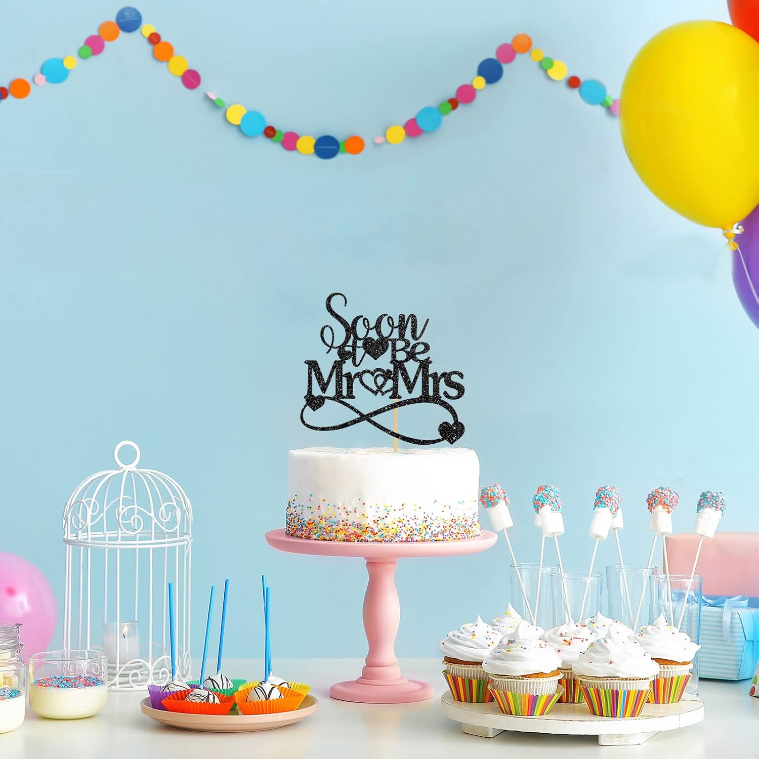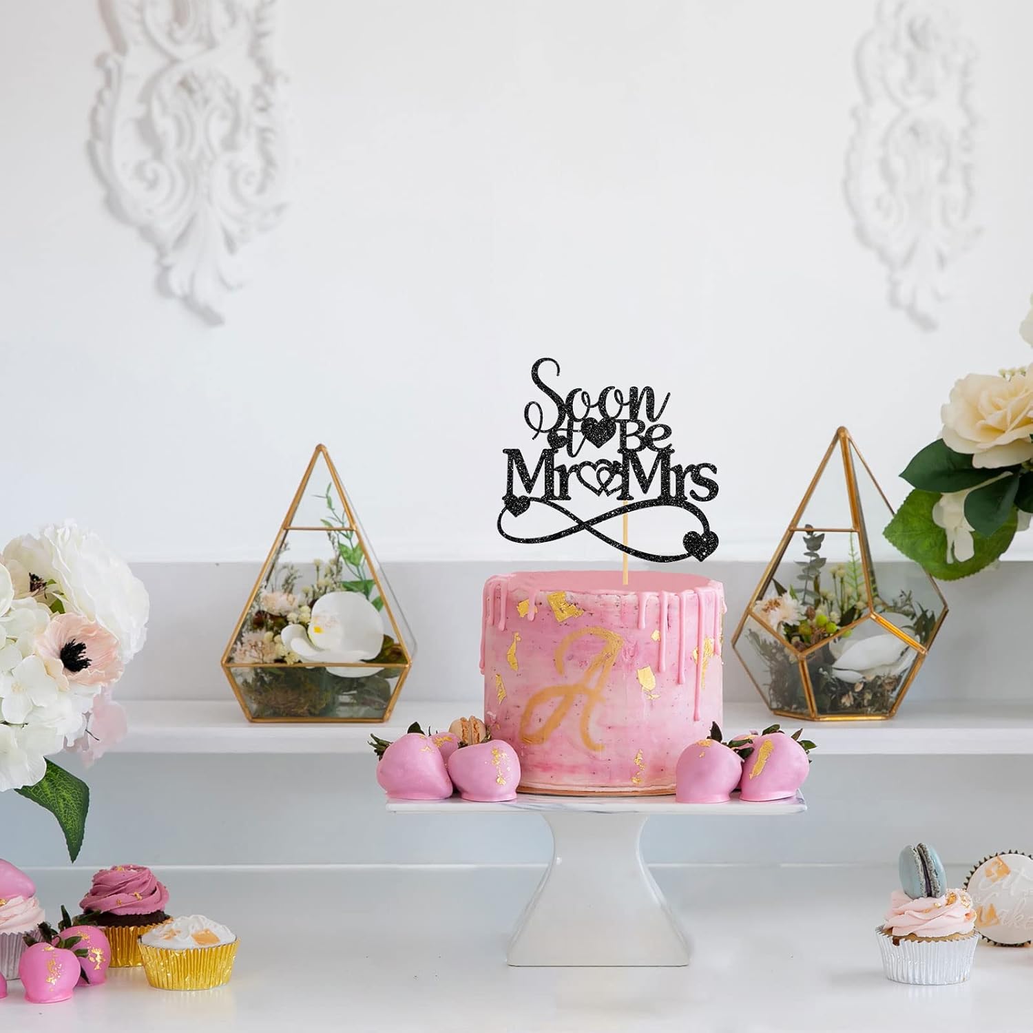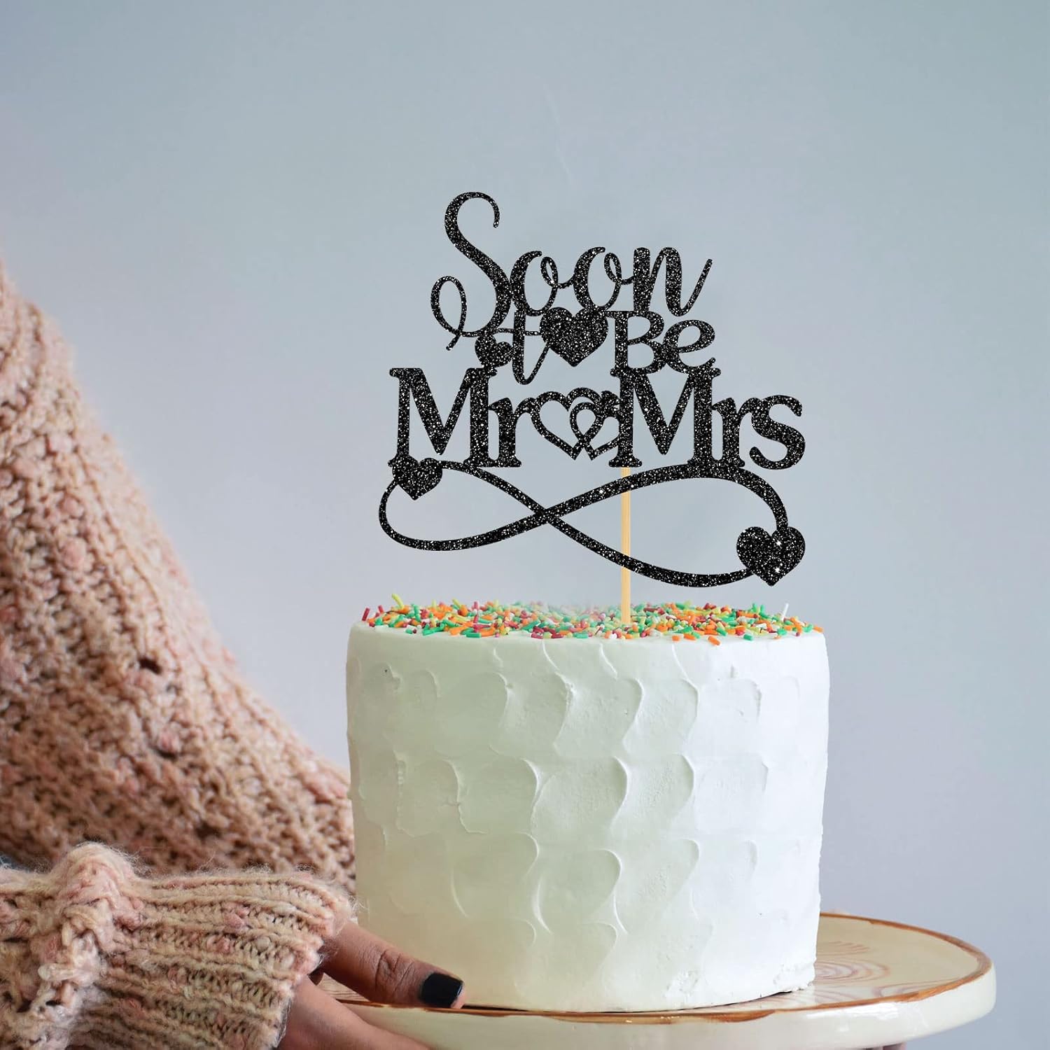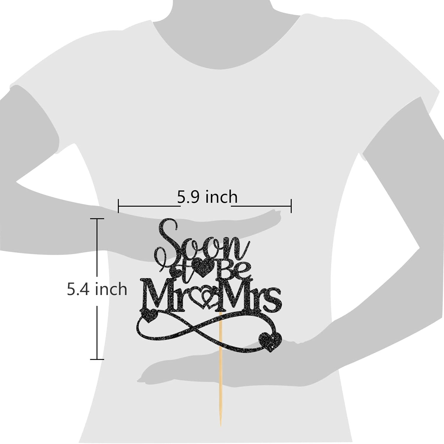 - Great Size 💖:Black “soon to be mr&mrs”cake topperr is 5.9 * 5.6 inches, it fits standard size or most sizes birthday cake or beer cake