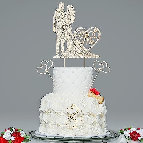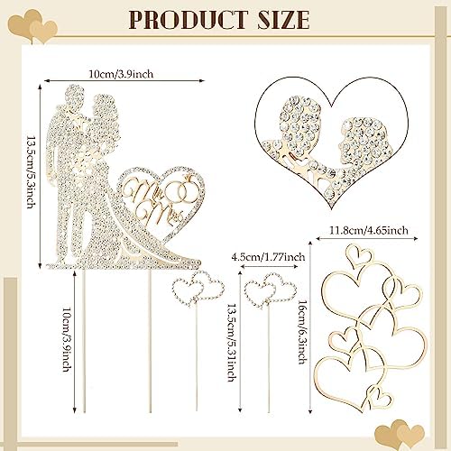 - Size Information: the Mr and Mrs cake topper measures about 5.3 x 3.9 inch, and the rhinestone heart cake toppers are about 1.97 x 1.38 inch, appropriate size for decorating a variety kinds of items