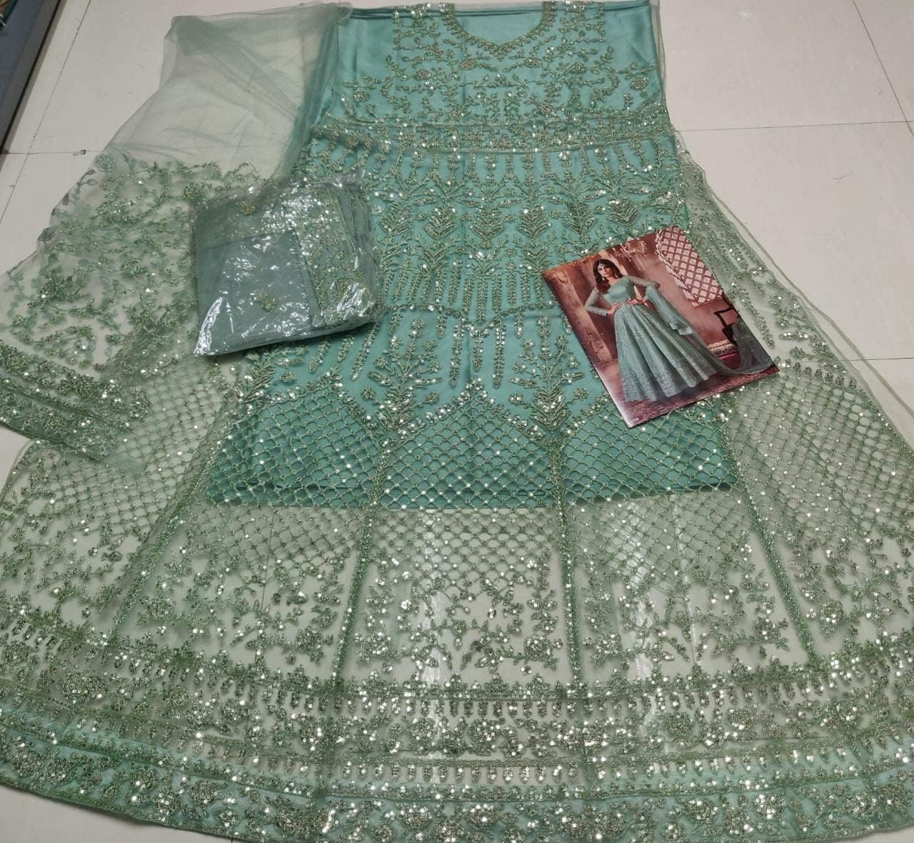 • Top Fabric : Butterfly Net + Embroidery Work || Dupatta fabric: Butterfly Net + Embroidery Work || Bottom Fabric : Sartin || Inner Fabric : Sartin