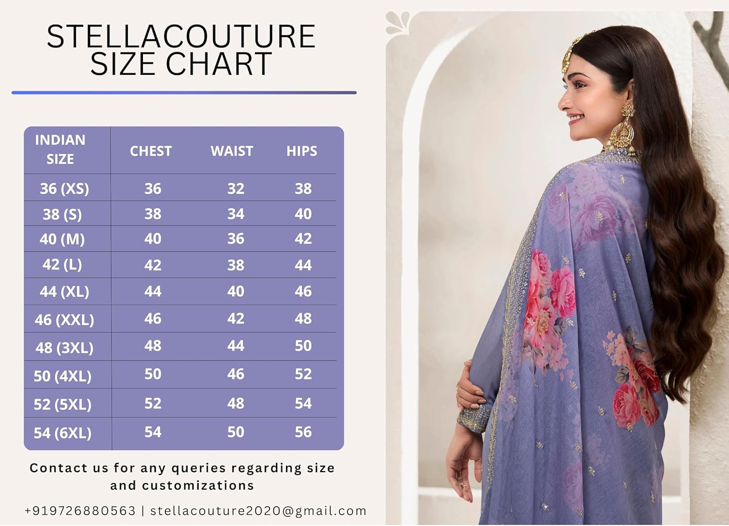 • Available size in inches : X-Small-36 || Small-38 || Medium-40 || Large-42 || X-Large-44 || Contact us directly for any type of customization in measurements of salwar kameez)