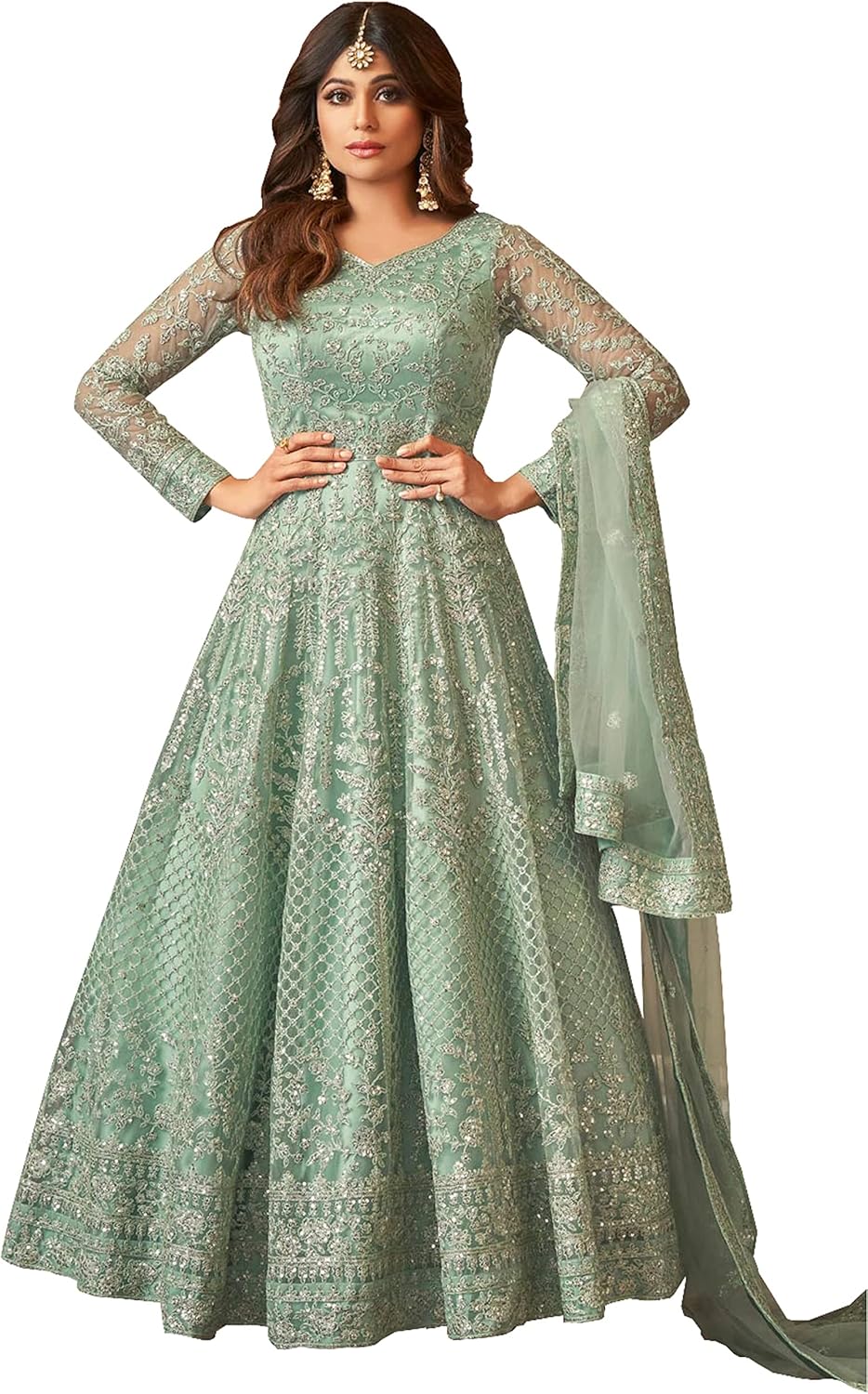 STELLACOUTURE womens indian traditional full length heavy embroidered ethnic salwar suit with dupatta (2318-O)