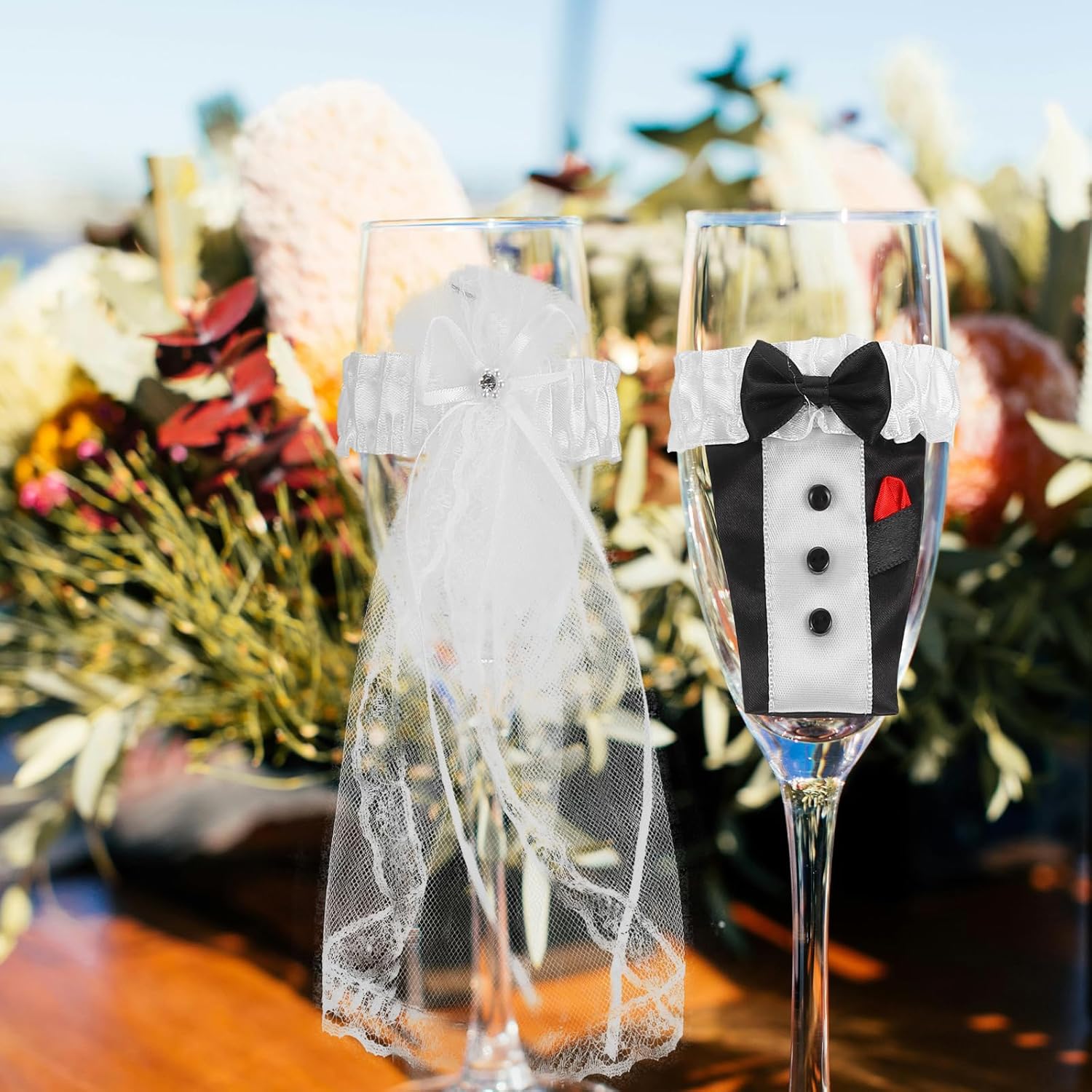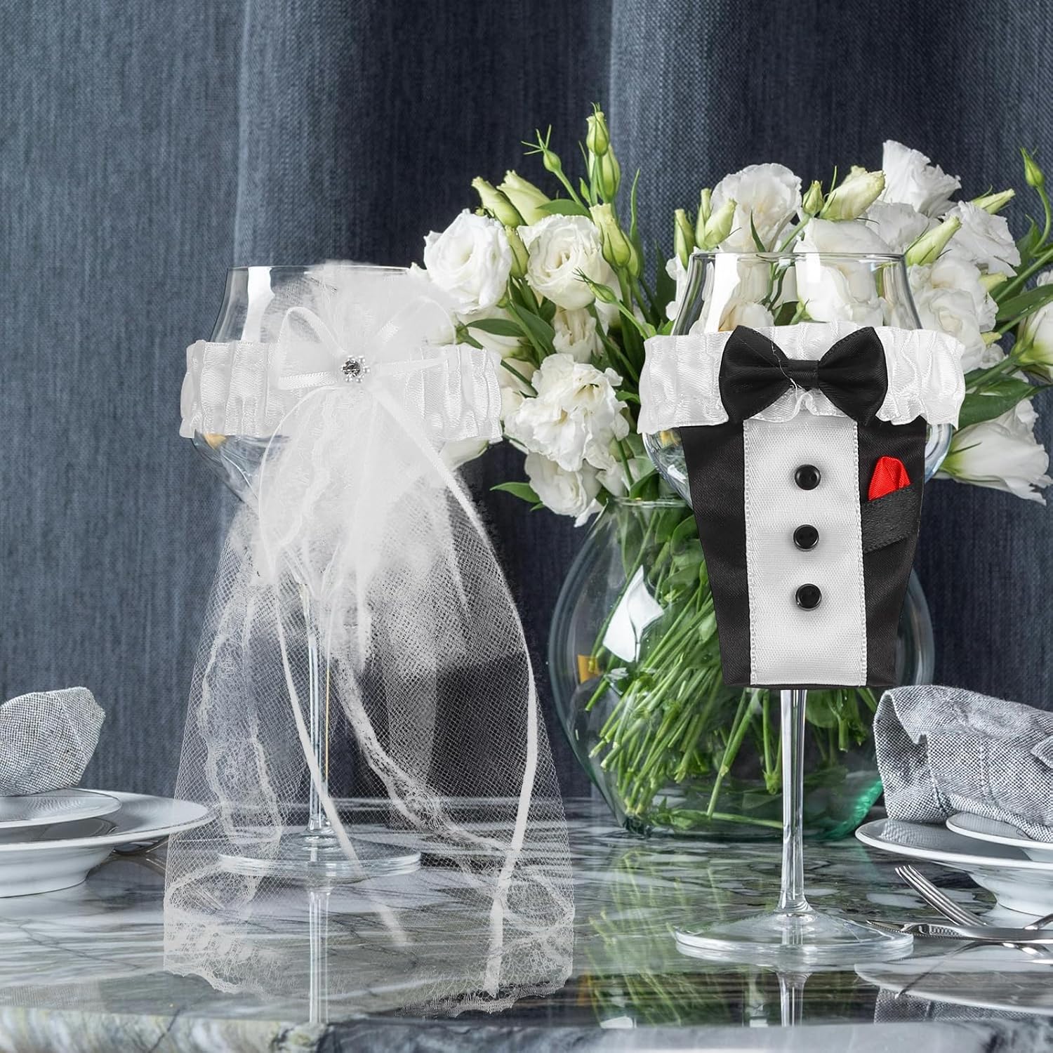 DescriptionIdeal for bridal showers, bridesmaid gifts, and wedding party favors, these wine bottle covers are a unique way to celebrate the special day.Whether used as wedding details flat lay props or as part of your wedding bottle decor, these covers will add a touch of elegance to any celebration.Lightweight at just 5.11g, they are easy to handle and store.Make your wedding day even more special with these beautiful wine bottle cover dresses.Features- Color: As shown- Material: Fabric- Size: 17 x 7 x 0.2 cm- Transform your wine bottles into stunning centerpieces with these bride and groom wine bottle covers, perfect for adding charm to wedding receptions and bridal showers- Crafted from well fabric, these wine bottle covers are lightweight yet sturdy, ensuring long-term use while enhancing your table settings- Ideal for engagement parties, weddings, bridal showers, and bridesmaid gifts, these wine bottle decorations bring a touch of elegance to any celebration- Designed to fit standard wine bottles, each cover measures approximately 6.69 x 2.75 inches, making it easy to slip on and instantly elevate your presentationPackage Include2 x Wine Bottle Covers