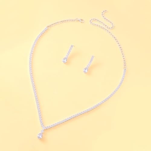 STONEFANS Costume Jewelry for Women – Silver Rhinestone Necklace And Earring Sets for Women Bridesmaid Wedding Jewelry Sets for Brides Wedding Accessories Necklace And Earring Set