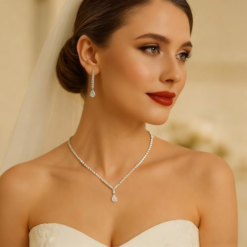 • 💍 Wedding-Ready Elegance & Timeless Sparkle – Designed for modern brides and bridesmaids, this STONEFANS silver jewelry set delivers refined shine with a balanced, graceful silhouette. The coordinated necklace and earring set creates a cohesive look that elevates bridal styling, making it an ideal choice among wedding jewelry sets for women, bridal jewelry, and wedding accessories. Whether worn as a bride jewelry set for wedding day or a polished bridesmaid jewelry set