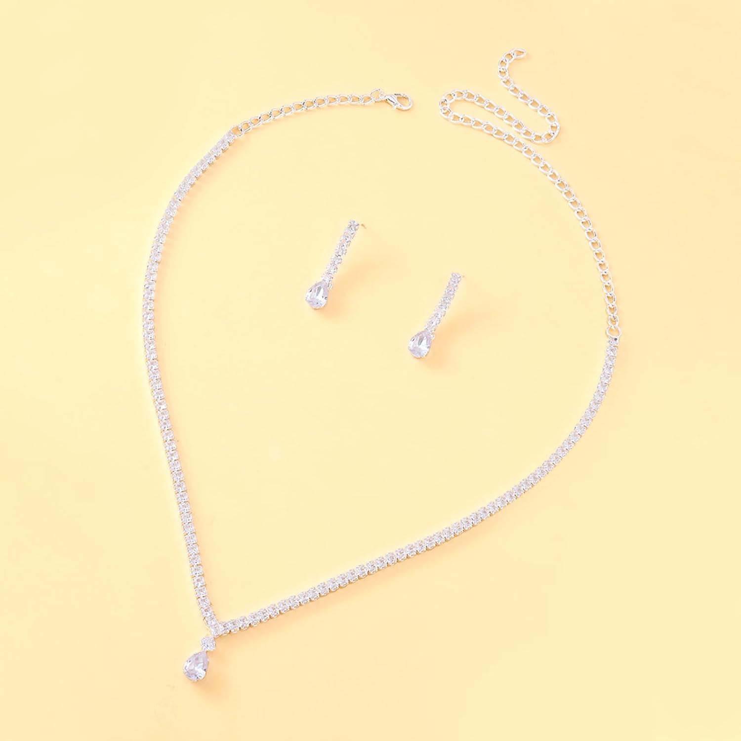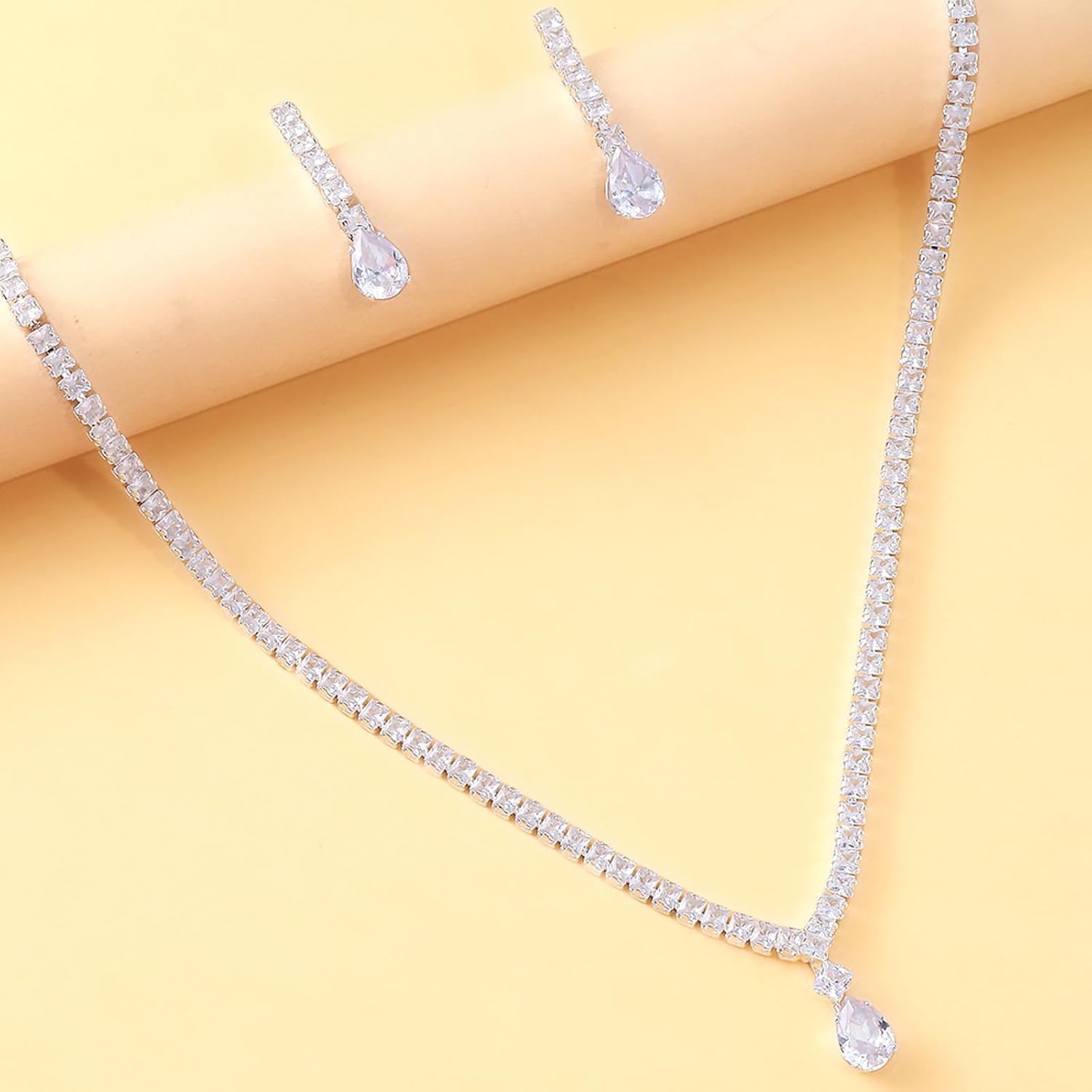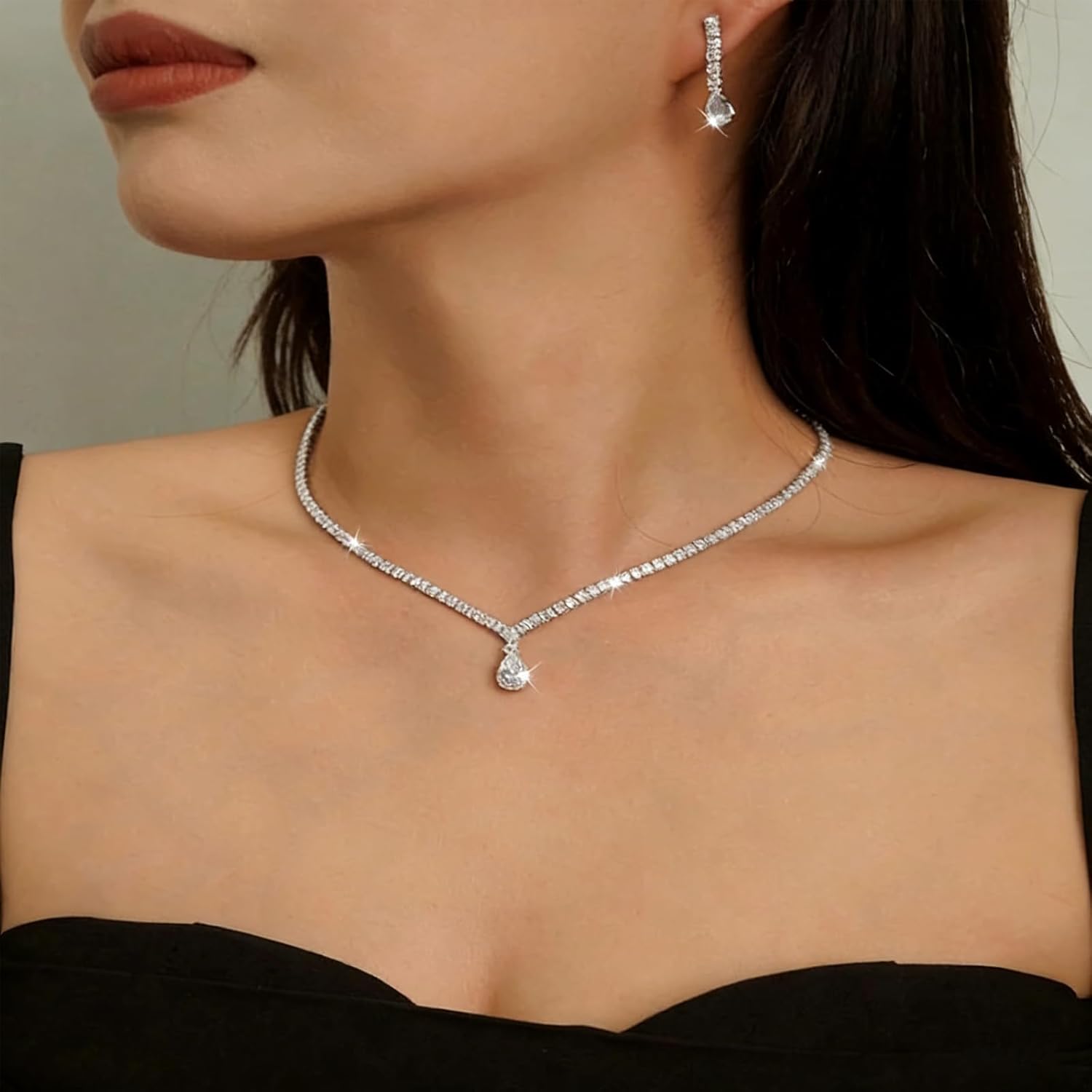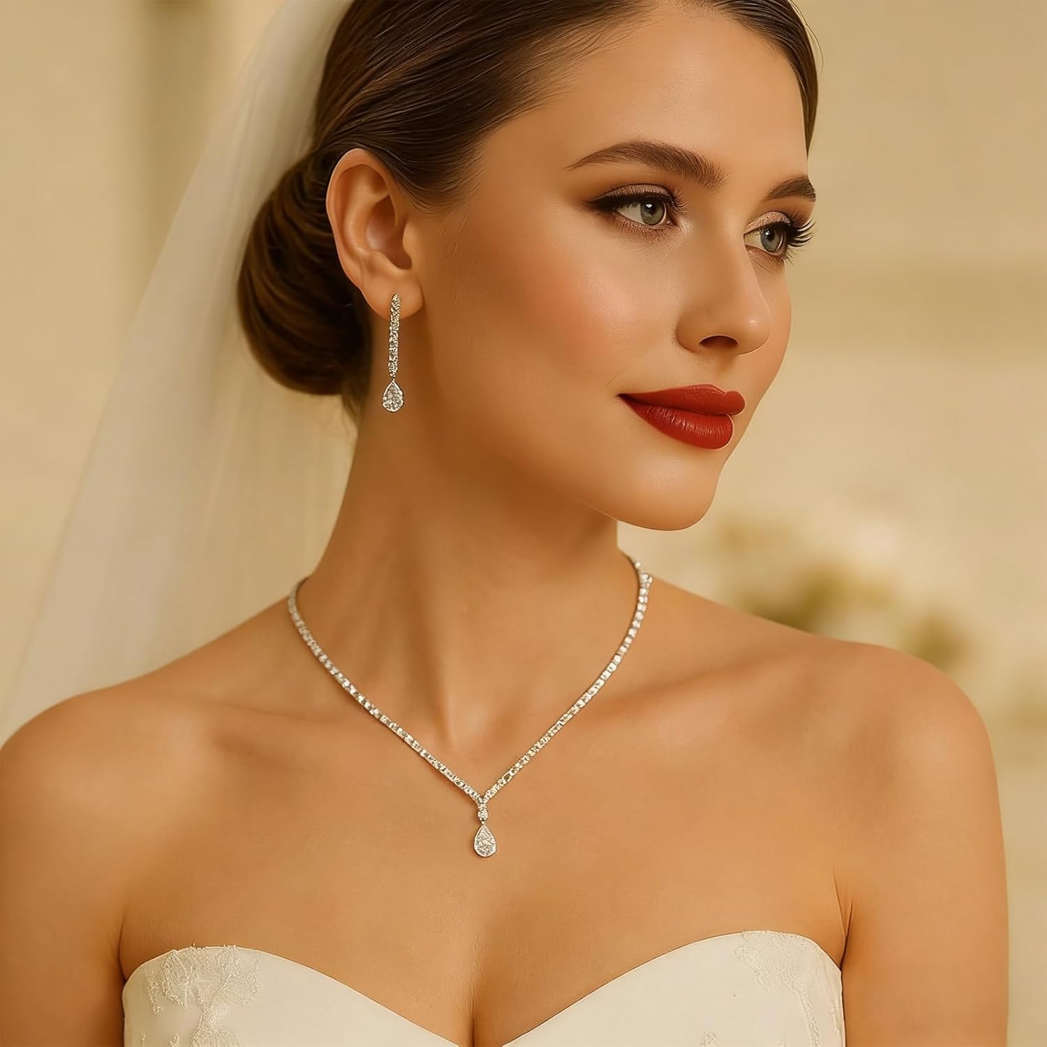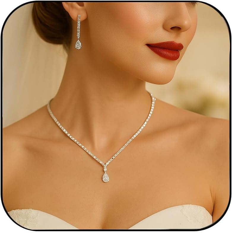 • 💎 Brilliant Rhinestone Craftsmanship – Featuring a shimmering rhinestone necklace for women, this set captures light from every angle with clean, polished settings. As premium costume jewelry for women, it offers the luxurious look of fine silver jewelry while remaining accessible and versatile. Perfect for those seeking stylish costume jewelry that delivers high visual impact for weddings and formal events