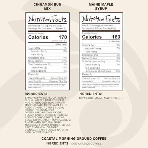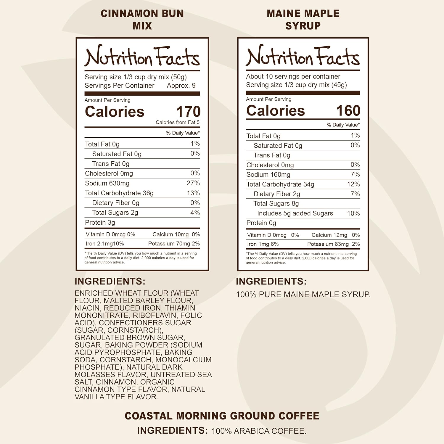 • Everything needed for a delicious gourmet breakfast at home, featuring premium mixes, real maple syrup, and artisan coffee for an authentic taste of New England.