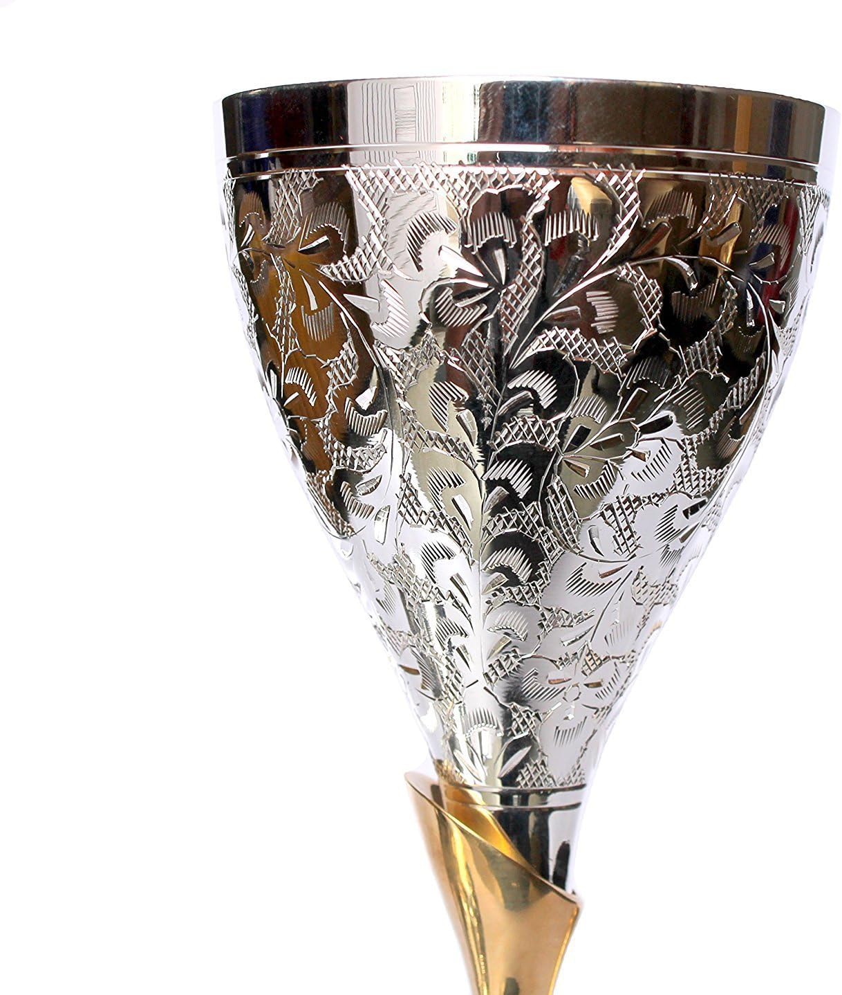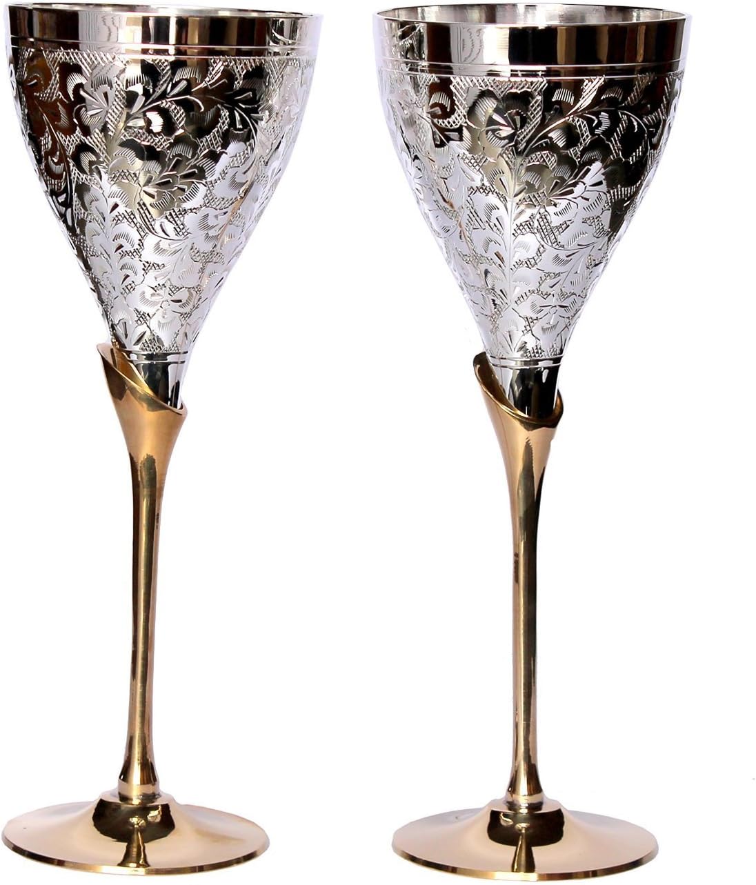 Start your celebration with these distinctive, elegant flutes, handcrafted in brass and coated silver & gold for the classy look. Set of two Silver Plated and Brass Tall Champagne Flute Glasses. These Beautiful and Sturdy Flutes are 9.5″ Tall and..