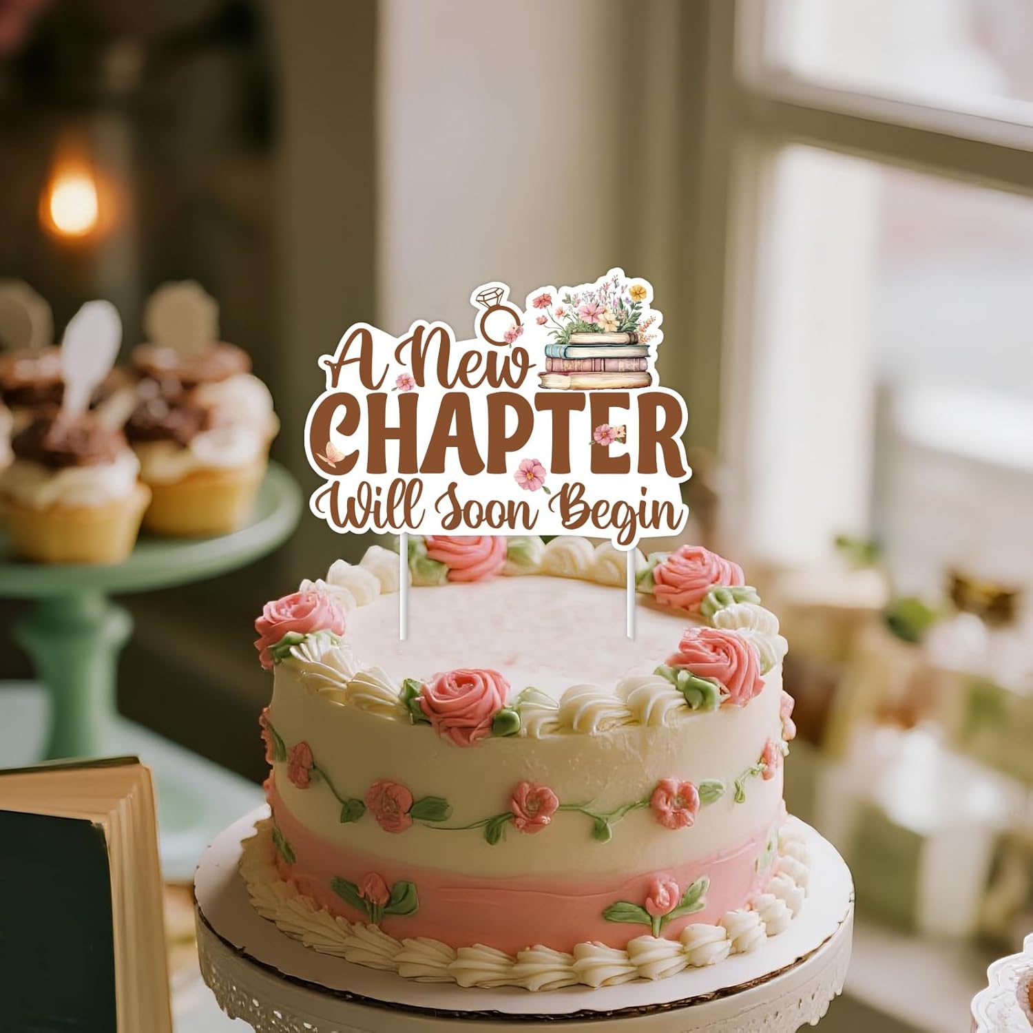 Storybook Theme Cake Topper A New Chapter Will Soon Begin Cake Decoration Storybook Bridal Shower Decorations for Girls Flower Storybook Book Themed Bridal Shower Baby Shower Birthday Party Supplies