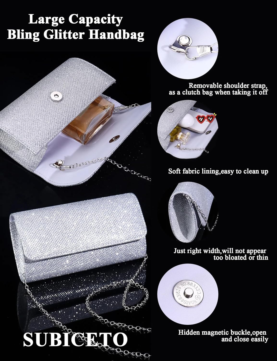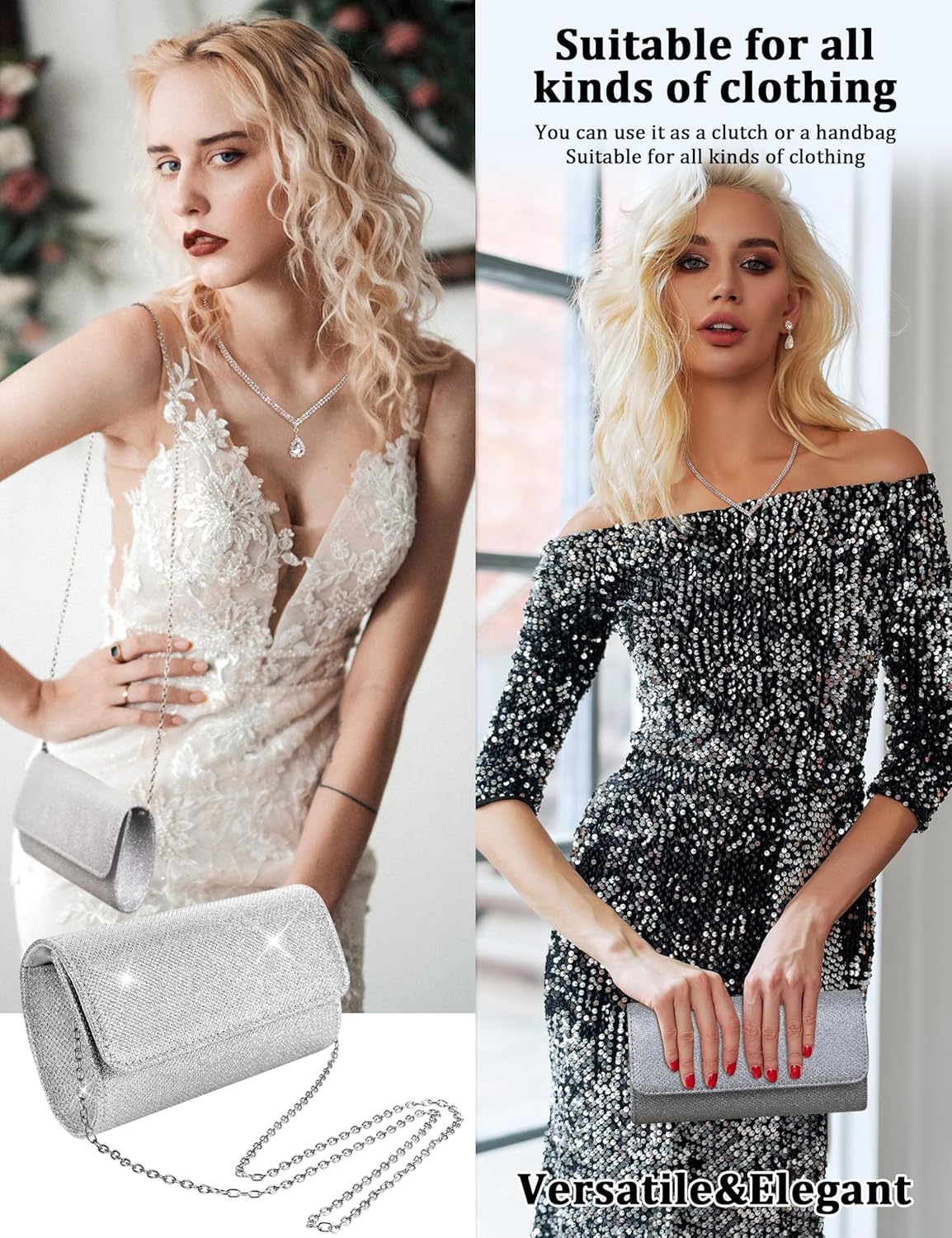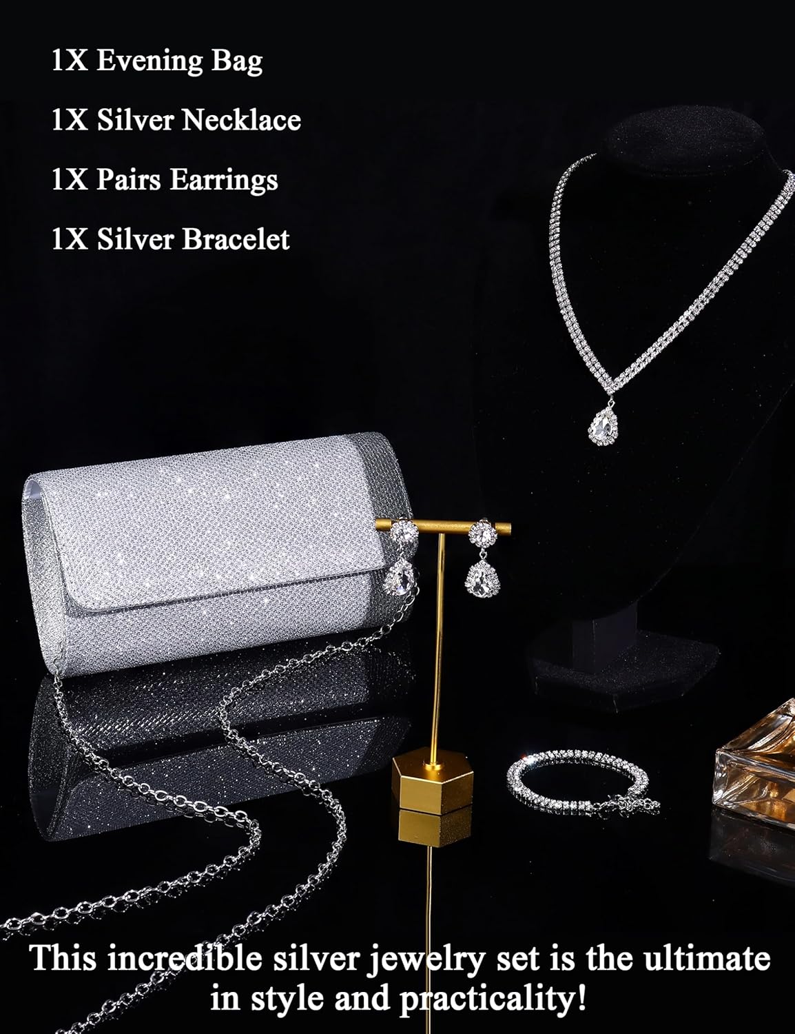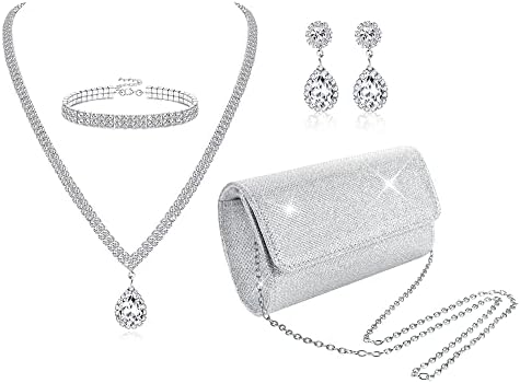 - Evening Clutch Purses For Women:Whether You’re Getting Married or Attending a Special Event, This Jewelry Set Is Perfect for Adding a Touch of Sparkle and Shine to Your Look. The Necklace Earrings Bracelet Sets and silver clutch purses for women evening are perfect choice for your mother,sister,wife,friends,daughter and Girlfriend on birthday,party,Graduation,Mother’s Day,Valentines Day