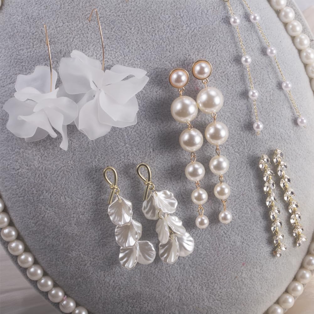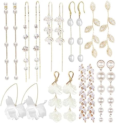 - UNIQUE DESIGNS: These earrings are unique designed, the cubic zirconia thread with chains, you could wear from two sides, the pearl tassel earrings , the CZ dangle threader, and elegant faux pearl earrings, long olive leaf earrings, so many different designs, very beautiful to wear on.
