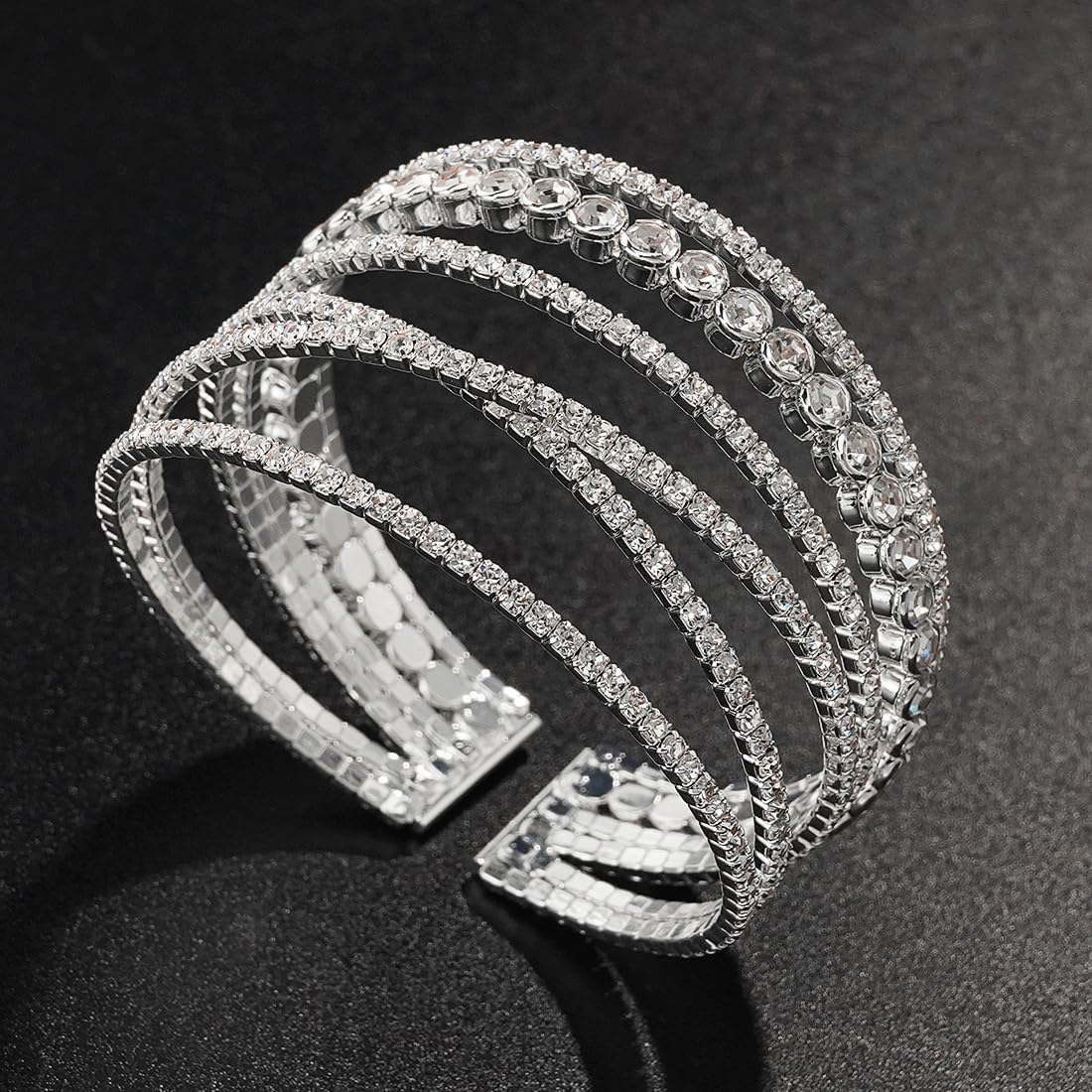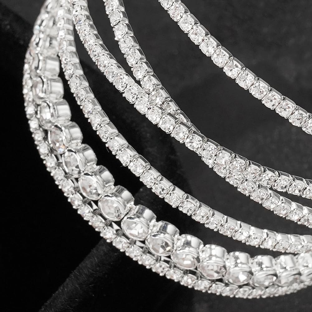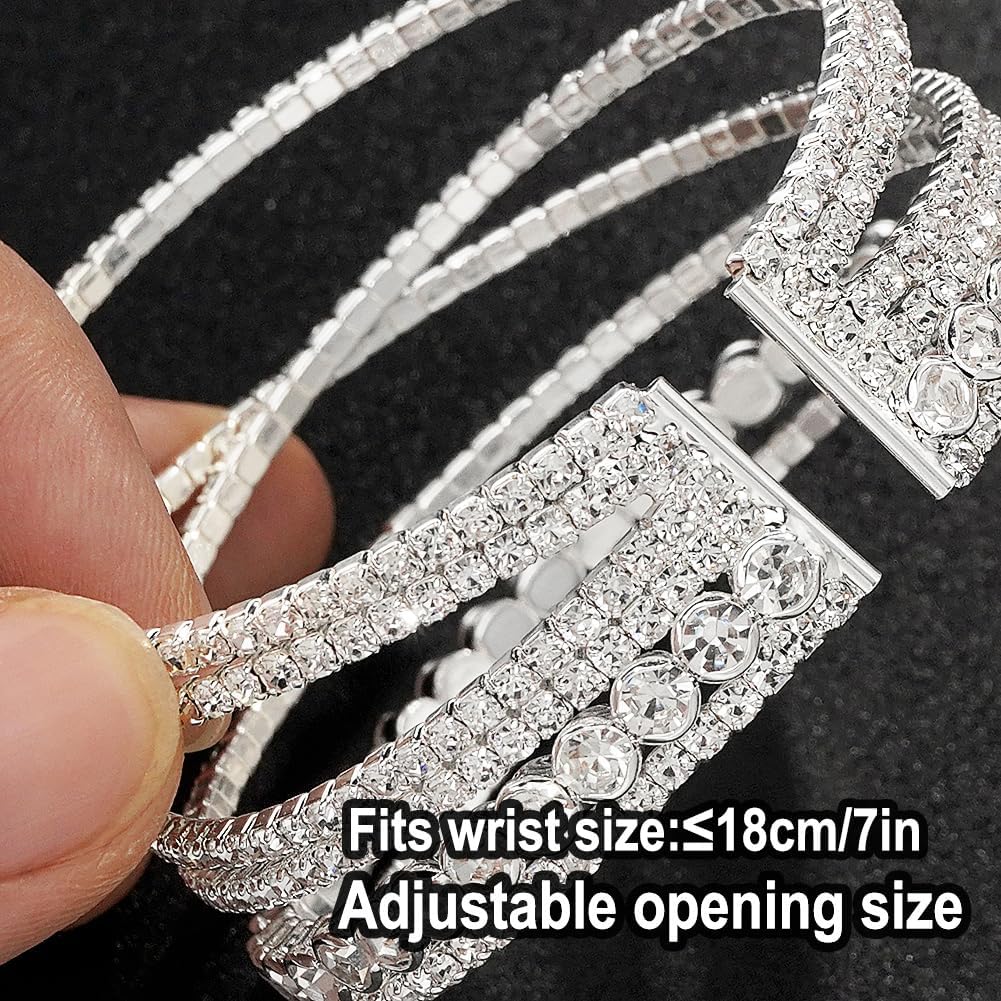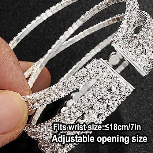 - Multi-layer Design: This silver rhinestone bracelet is stylish and elegant, suitable for all styles of clothing, you can wear it with dresses, shirts, casual wear, etc. The multi-layered design is brighter and more layered.