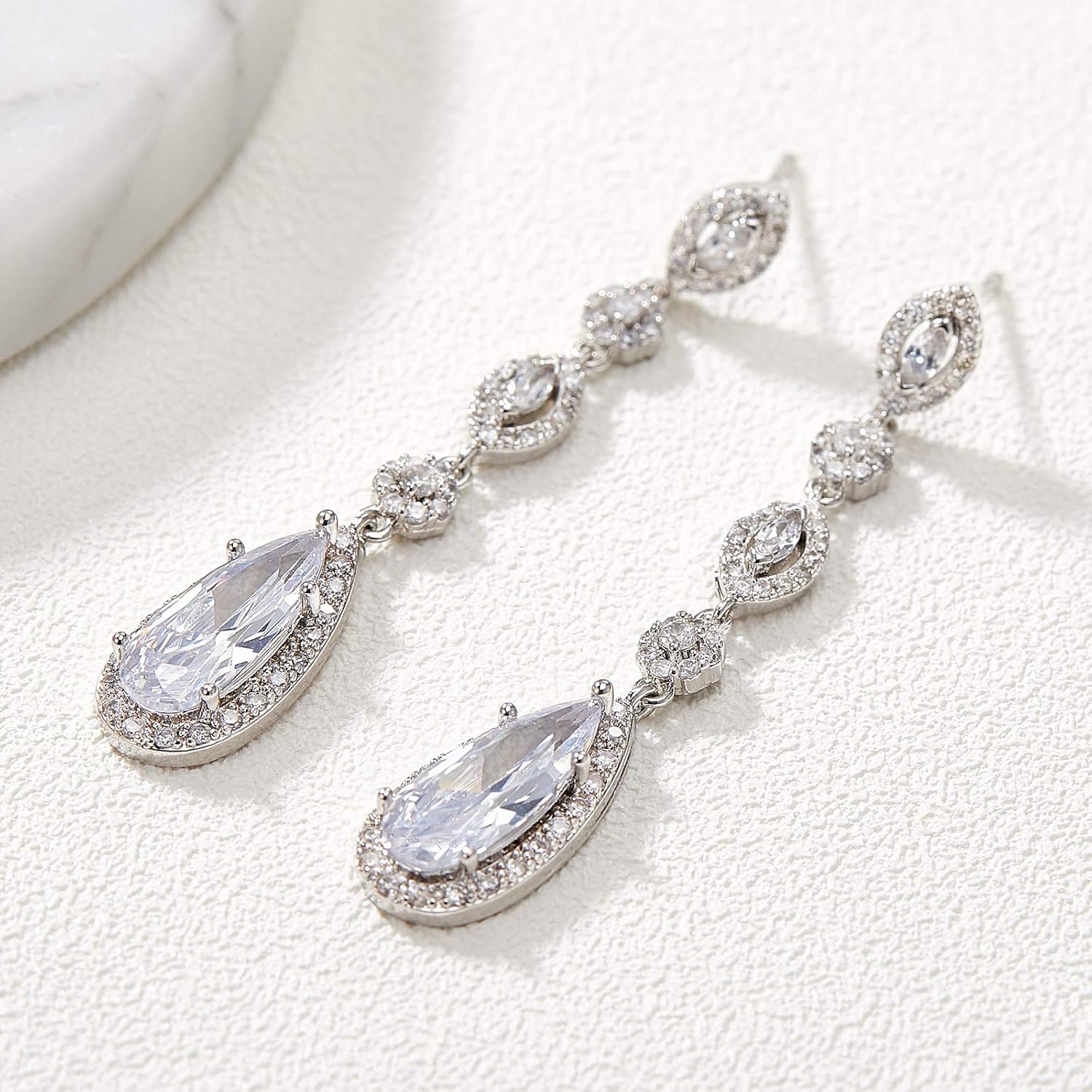 • ➤【Design】: Vintage Elegant wedding crystal earrings with top quality cubic zirconia with a rhodium plated finish will add the perfect touch of sparkle and elegance to your wedding or special event outfit!