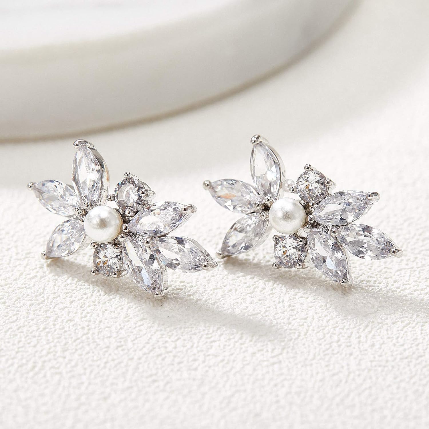 - ❣️【MATERIAL】: Finest Quality AAAAA Grade Cubic Zirconia, Silver Plated Copper. Delicate copper post with bullet clutch earring backs. Safe for Sensitive Ears, Hypoallergenic, Nickel-Free, Lead-Free.
