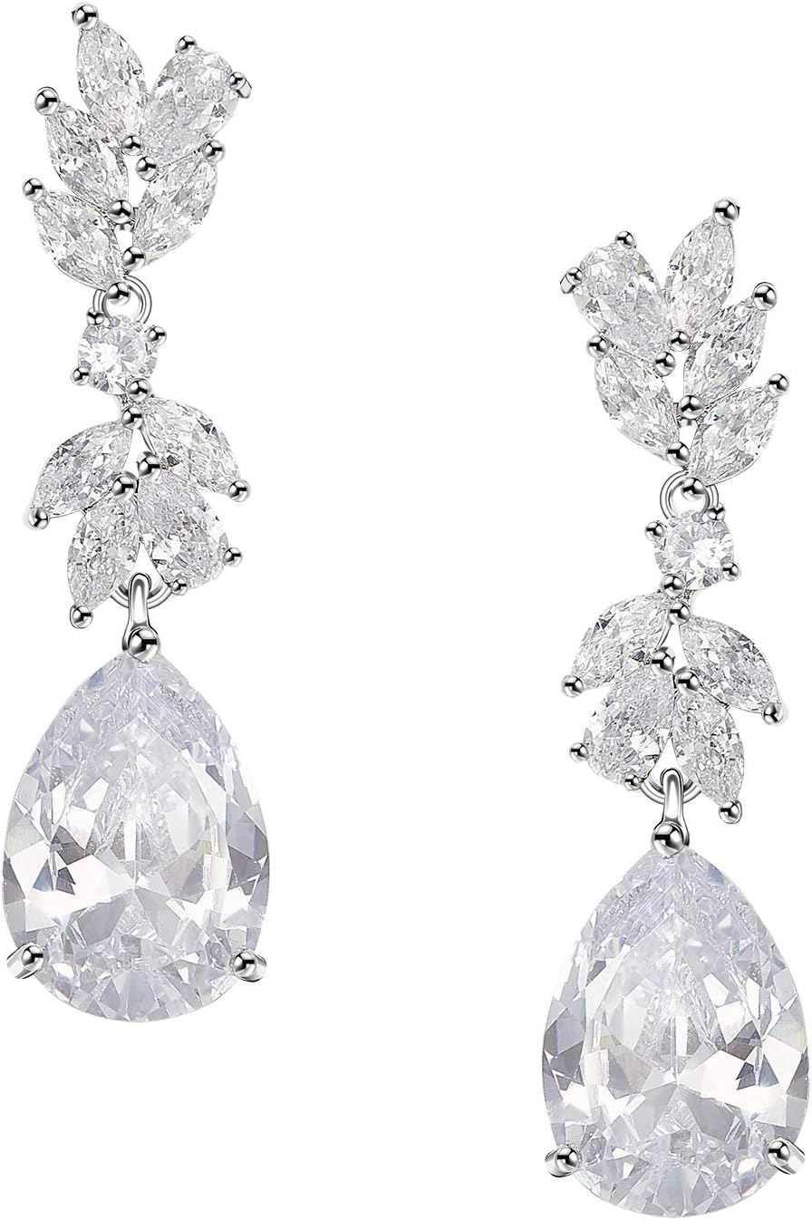 - ➤ Amazing bridal earrings created created with small marquise, teardrop and round cut cubic zirconia mounted in a leafy setting on the top to create a feminine, romantic glam look. Perfect for your vintage 1920s art deco, Great Gatsby, Downton Abbey style weddings & events, and also make for the perfect Bridesmaid Proposal.