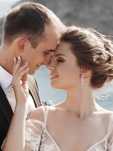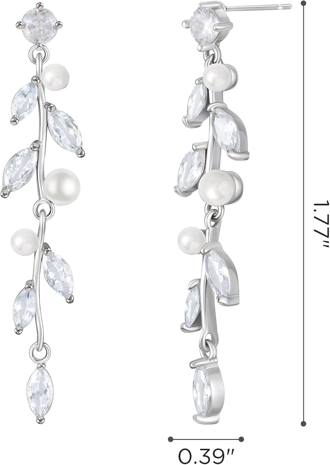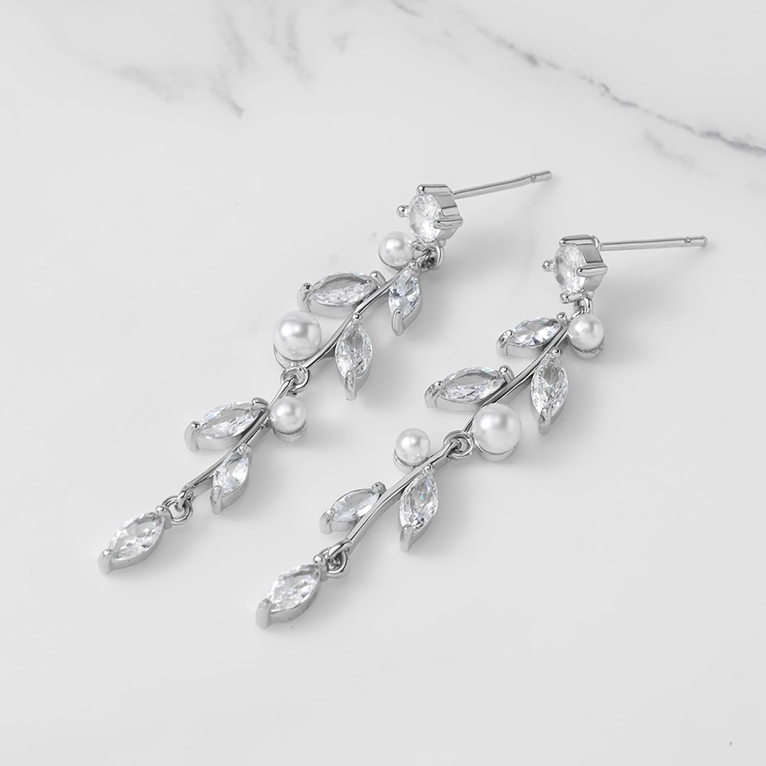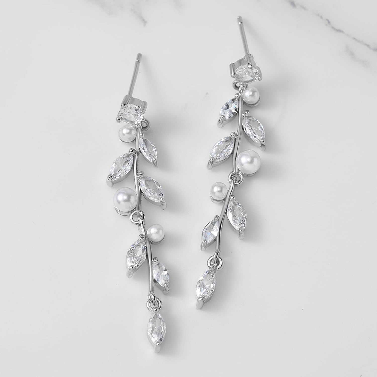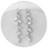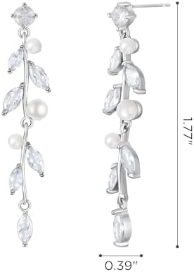 - 【Features】: Elegant bridal earrings offer a nature-inspired design resembling a floral vine featuring alternating round and marquise cubic zirconia stone and tiney luminous white pearls clusters . perfect for the bride or wedding party, baptisms or any religious special occasion.
