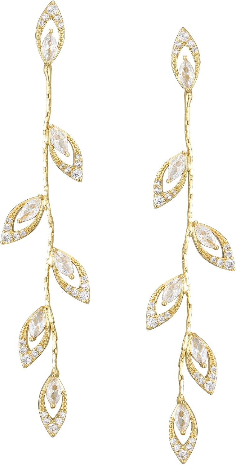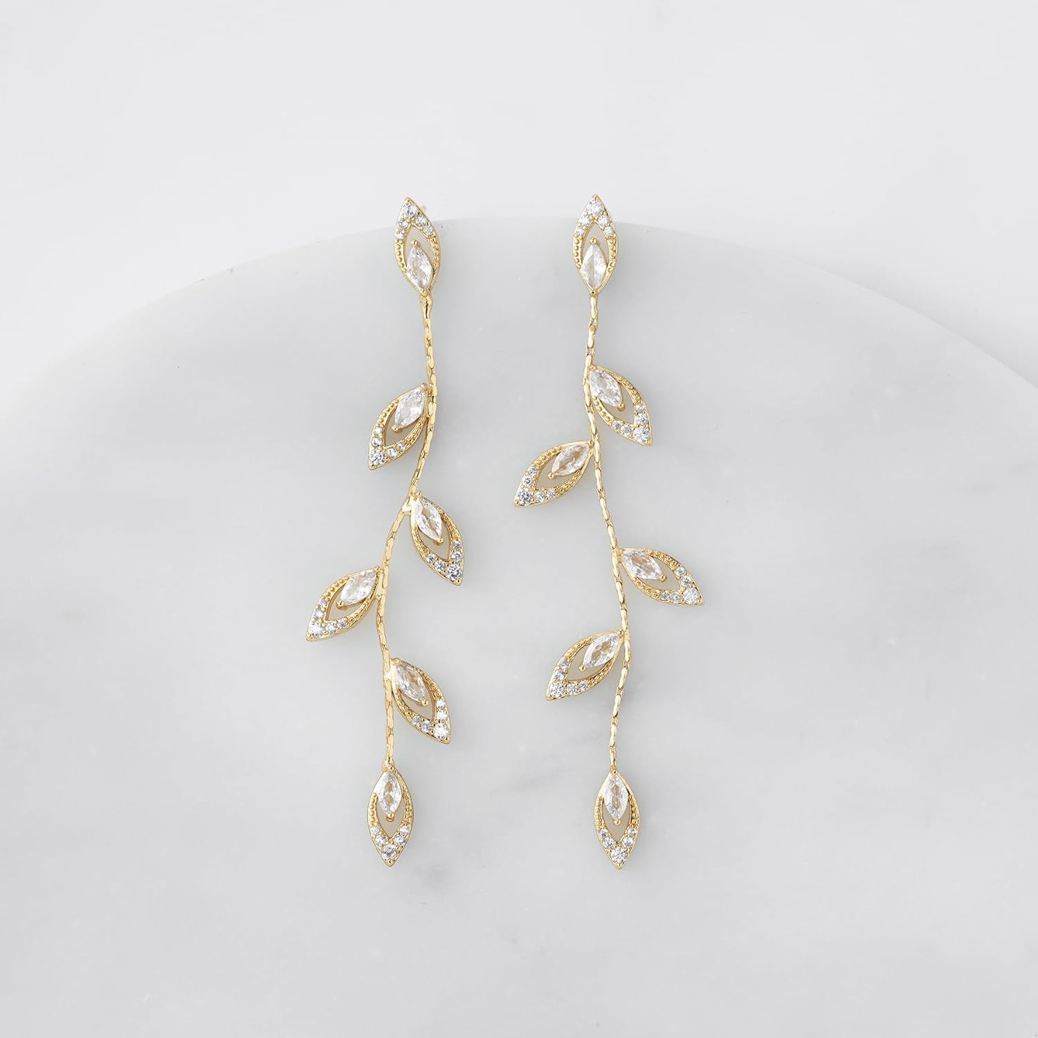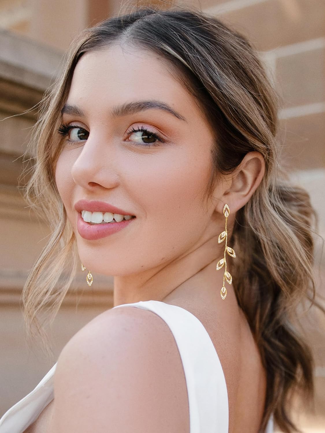 - 【Design】: Bridal earrings are made with long cubic zirconia chandelier pendants in a cascading leaf design are perfect for a garden or spring wedding for the Bride or Bridesmaids and party prom accessories for women.
