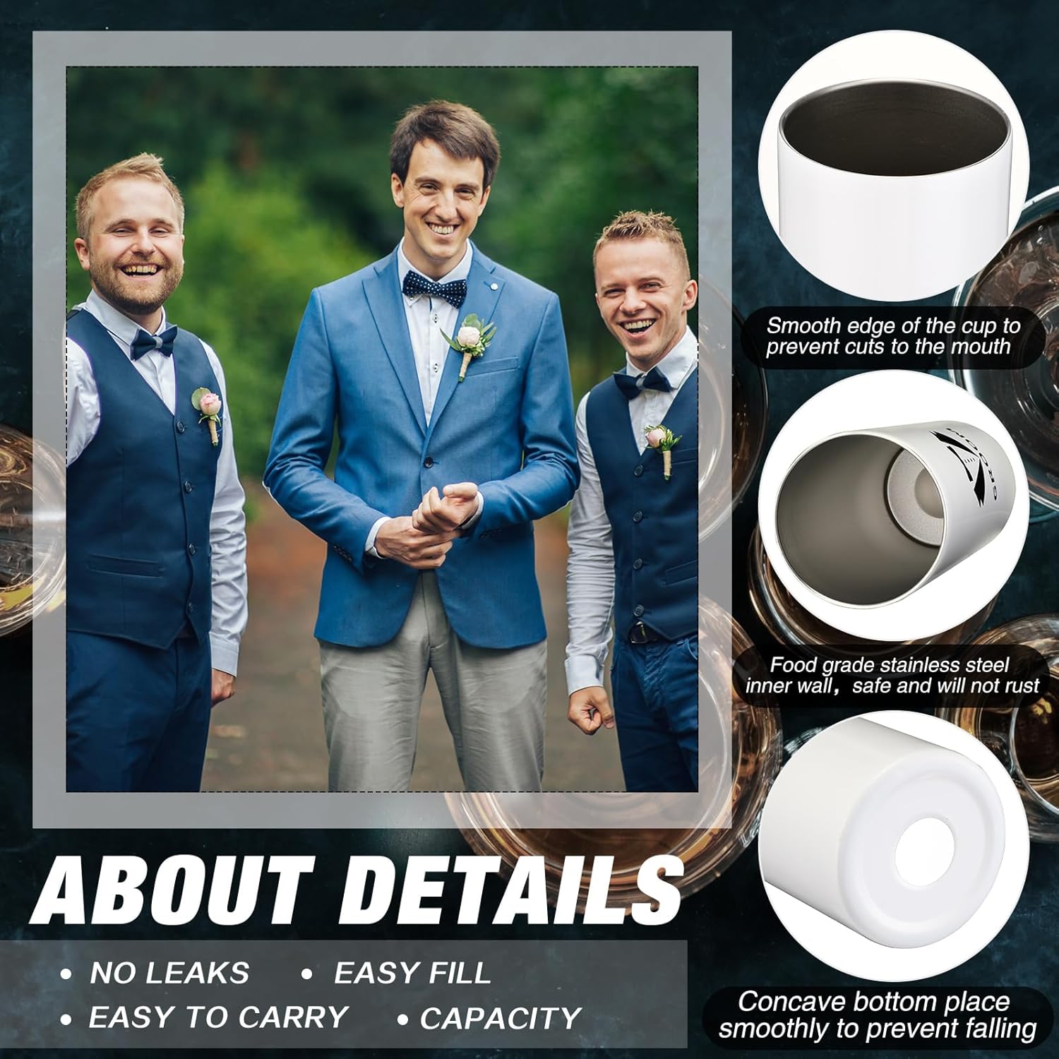 - Quality Material: the groomsmen cups are mainly made of quality stainless steel, sturdy and reliable, not easy to rust, break or deform, and will not leave a bad metallic taste in the mouth, able to serve you for a long time