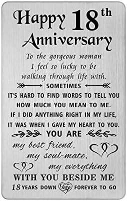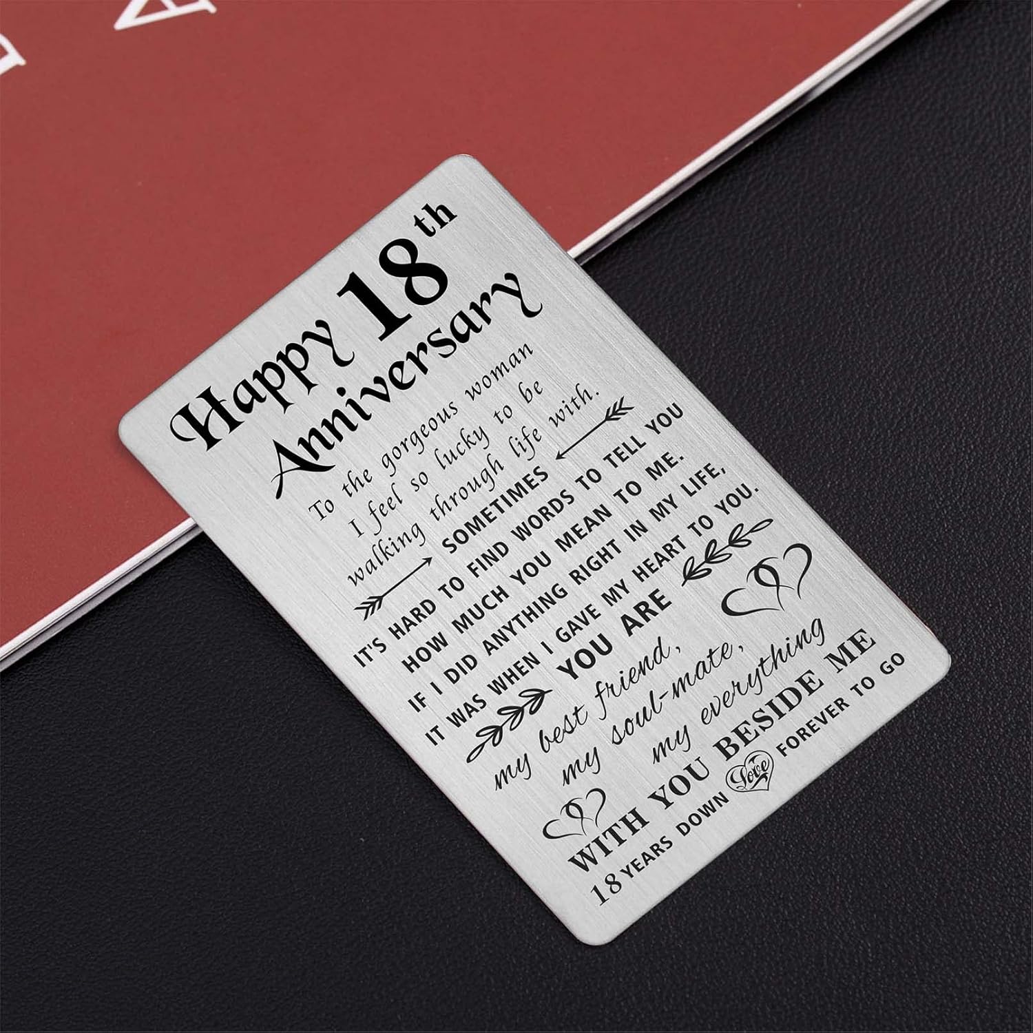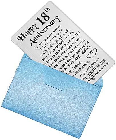 - 18 Year Anniversary Gifts for Her – Celebrate her with the sweet 18 year anniversary card, a little token of love on your 18th anniversary, she is able to keep it in her wallet and carry it with her instead of a paper card, can cherish for many years