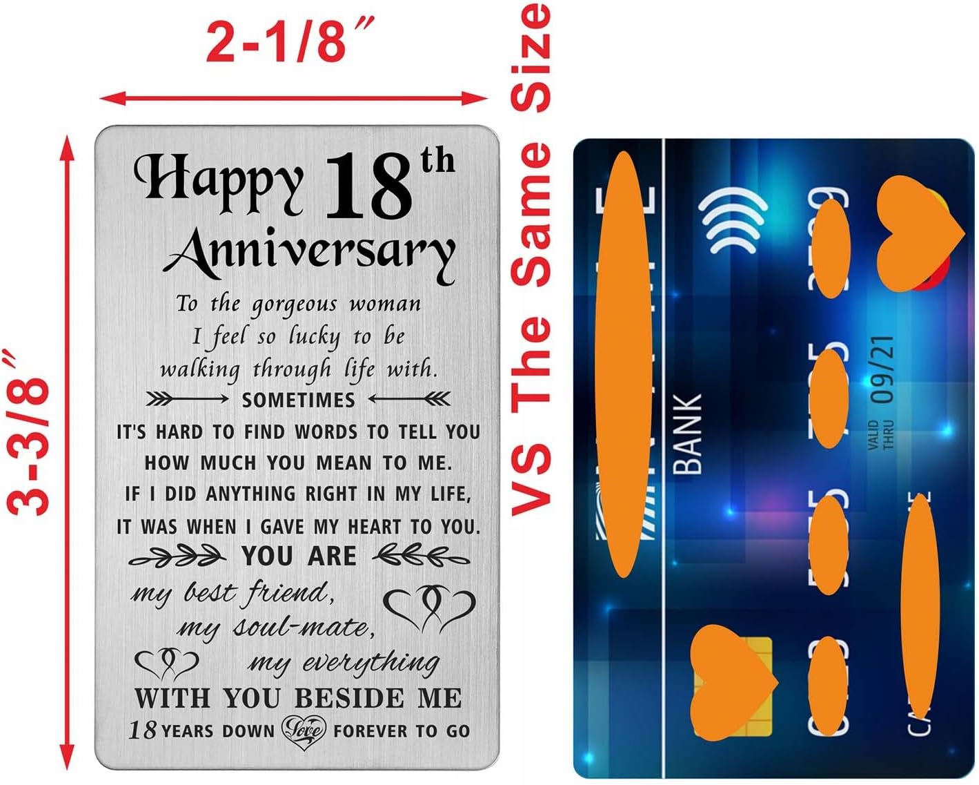 - Fits Perfectly In Wallet – Approximately credit card size 3.38″x2.13″x0.03″, small anniversary gift to remind her that you love her so much. Best 18th anniversary gifts for her, 18th wedding anniversary card for wife, 18 anniversary gifts for wife