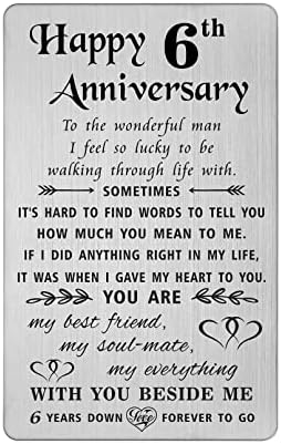 - 6 Year Anniversary Gifts for Him – Celebrate him with the 6th year iron anniversary card, tradition standard gifts for 6 Year Anniversary, can cherish for many years. Best 6th anniversary gifts for men, 6 year Wedding anniversary gifts for him iron
