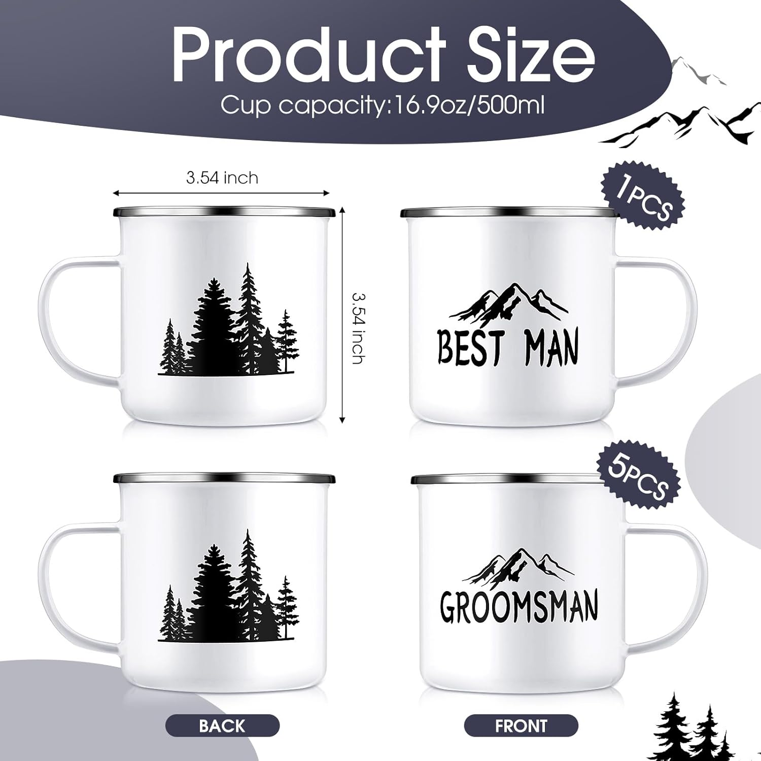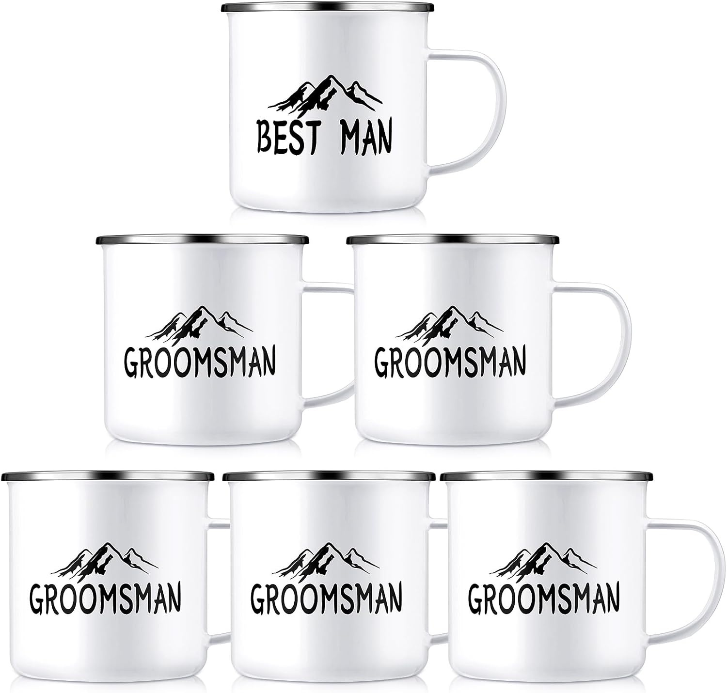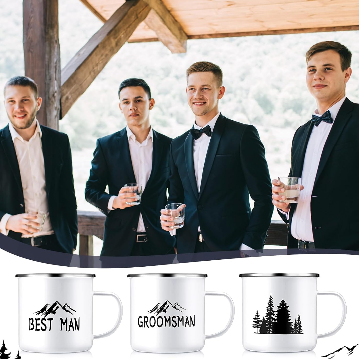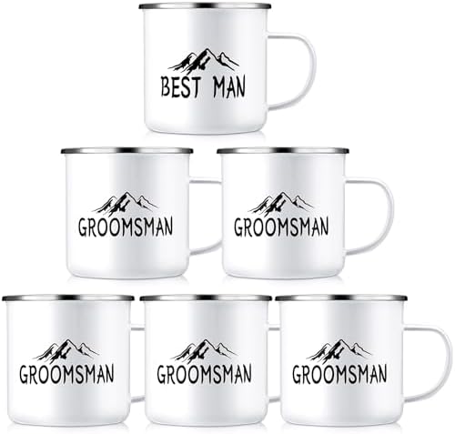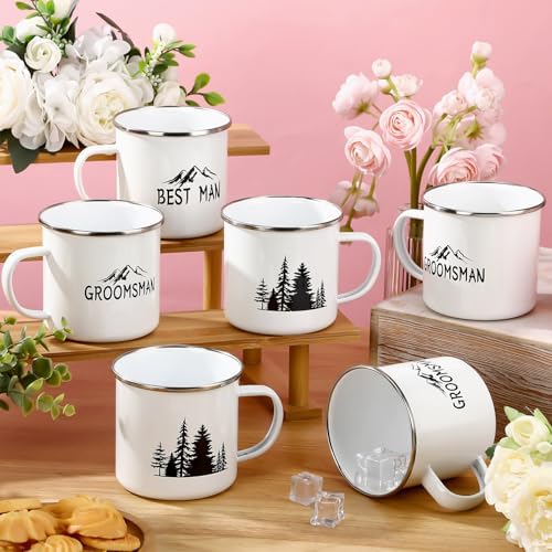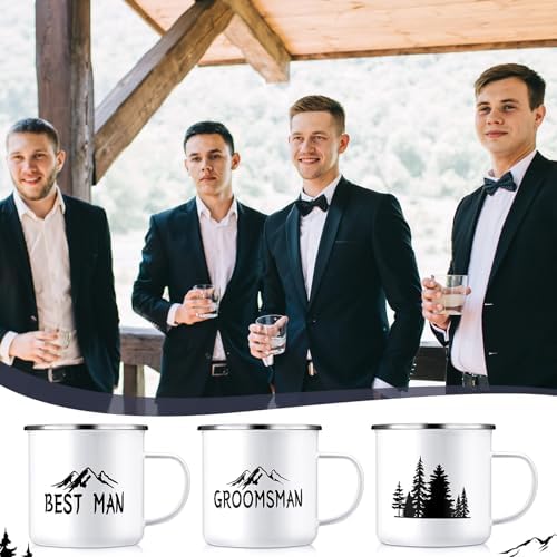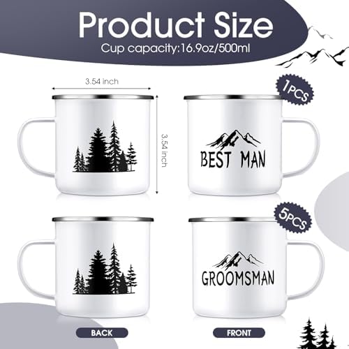 - Groomsmen Gifts Set: these groomsman proposal gifts include 6 enamel coffee cups, 1 best man coffee mug, 5 pcs groomsmen coffee mugs, these campfire mugs are printed with the best man and groomsmen theme elements, with the design of mountains and trees, personalized design makes your gift stand out at your proposal or weddings