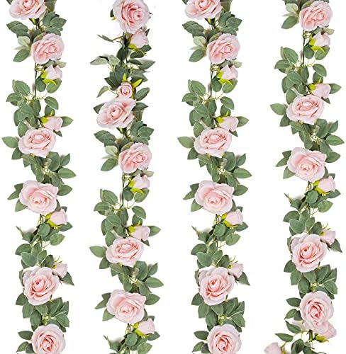 - 【INCLUDES】: 4 pack artifical pink rose garland. Each garland has 9 pink roses.