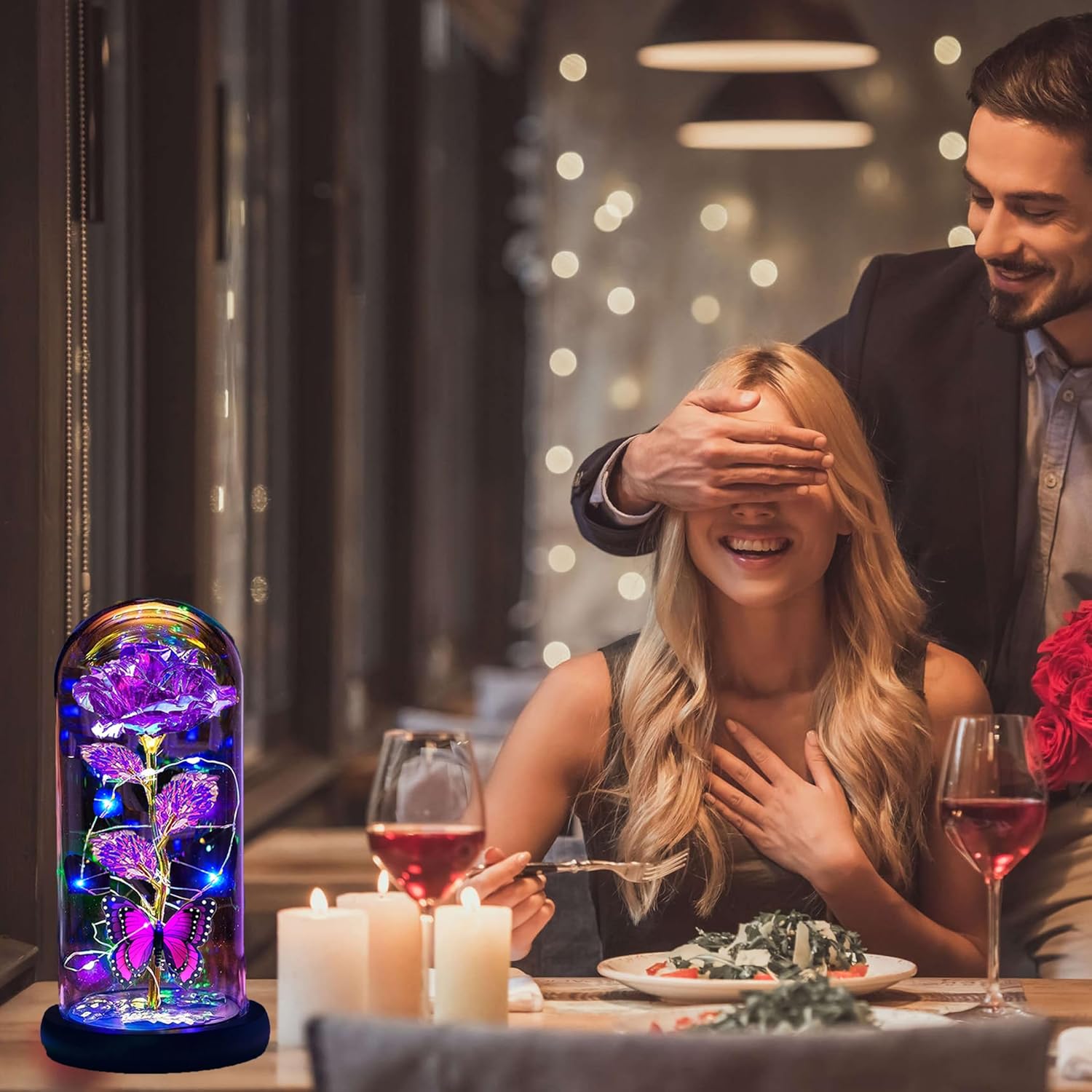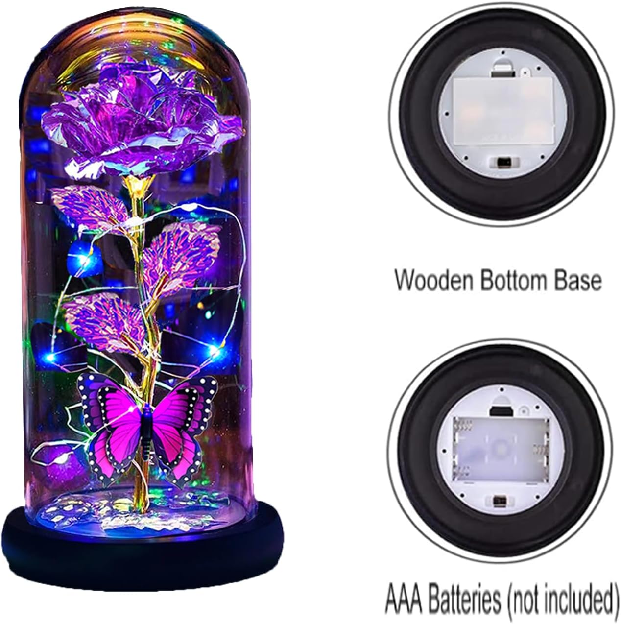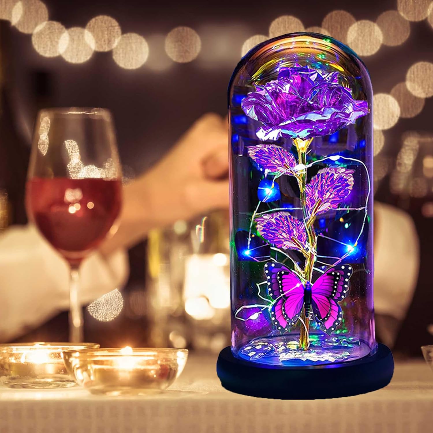- Valentines day gifts: This flower lamp seamlessly combines artistry with functionality, merging the beauty of roses with the delicacy of glass and a dome. Wrapped around an led strip light, powered by 3 AAA batteries (not included), it emits bright warm lighting. The led rose light is versatile, creating a good atmosphere both in daytime and nighttime. A symbol of appreciation and best wishes for the special woman in your life.