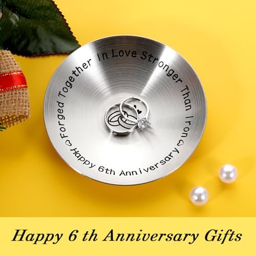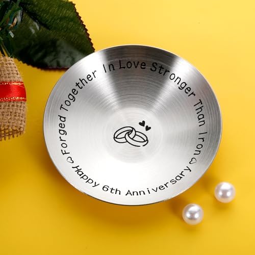 - 6th anniversary gifts for couple ideas—A unique keepsake 6 year anniversary decorations for a milestone anniversary! Strong and durable, just like your marriage, a simple reminder to cherish each and everyday. Happy iron 6th anniversary gifts, iron anniversary gifts for him, iron anniversary gifts for her, 6th anniversary gifts for him. Express your best wishes to couples, family, Daughter and Son-in-law, Son and Daughter-in law, friends, coworkers, neighbors with this anniversary jewelry dish.