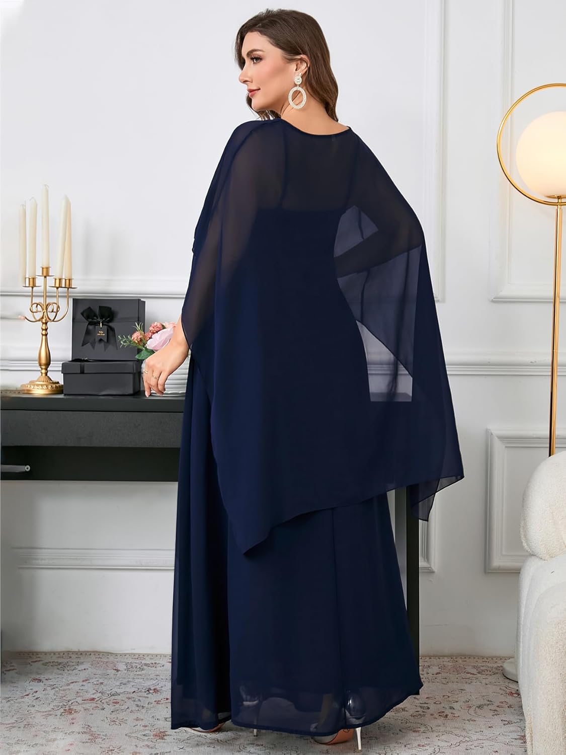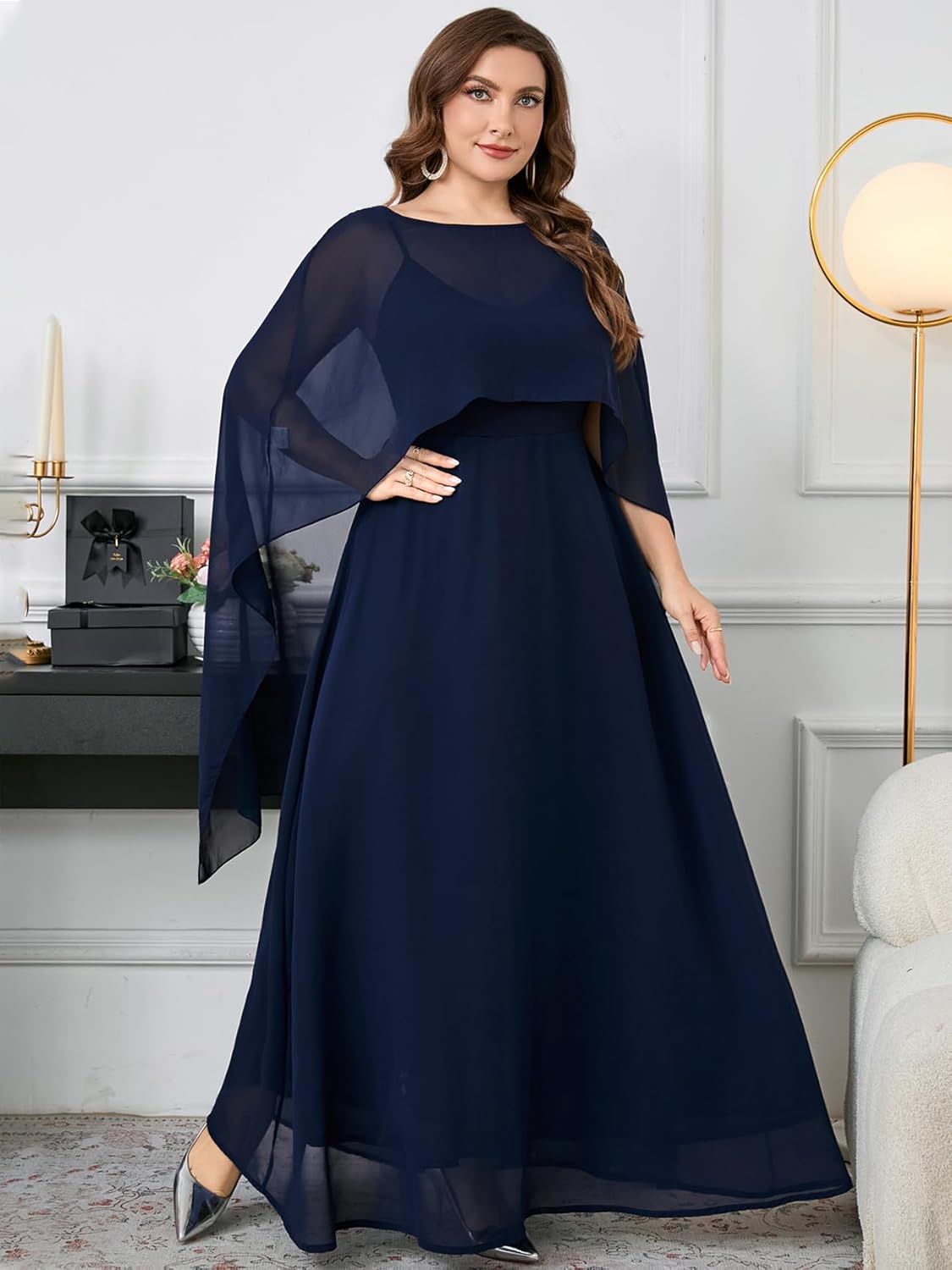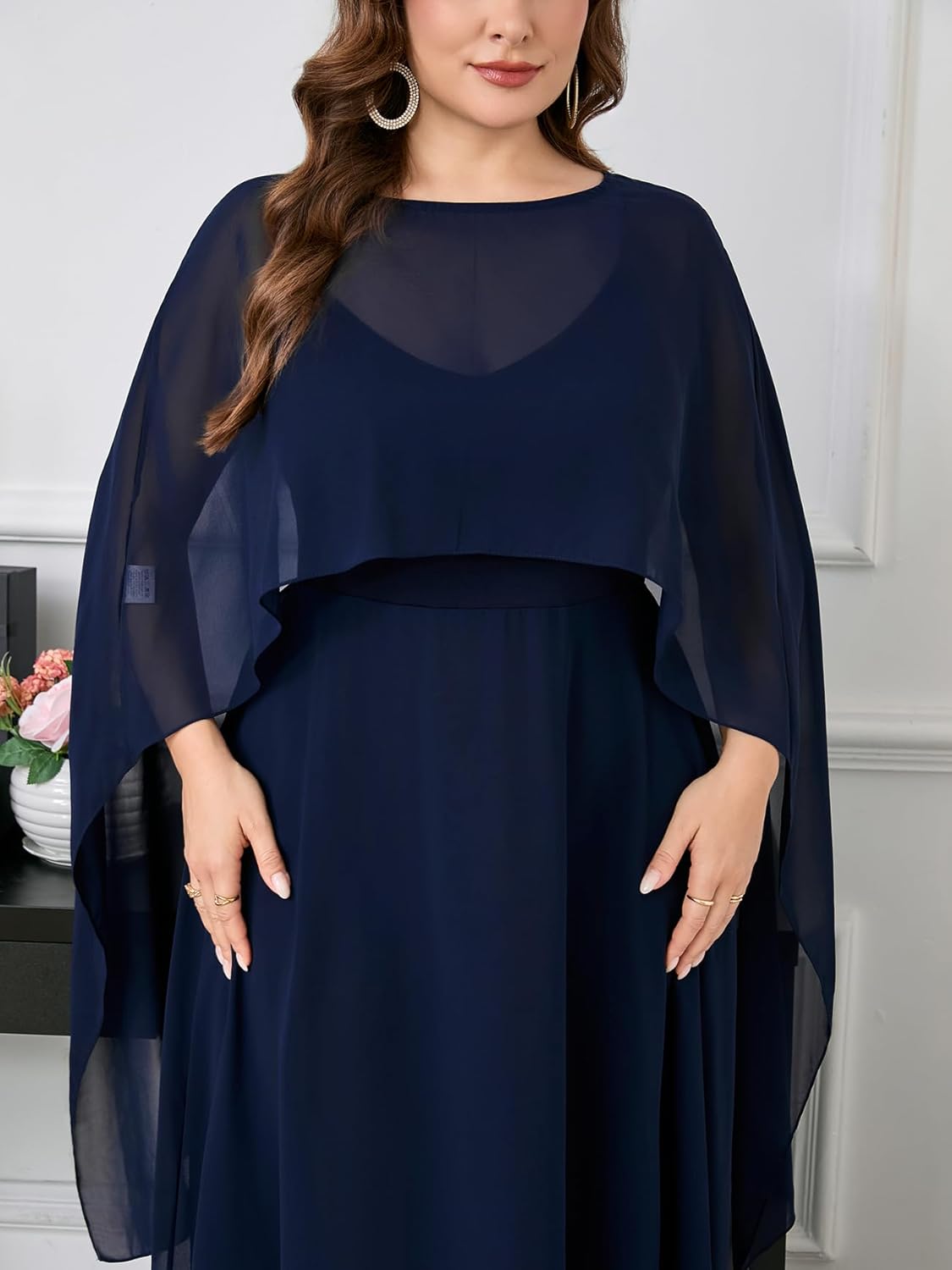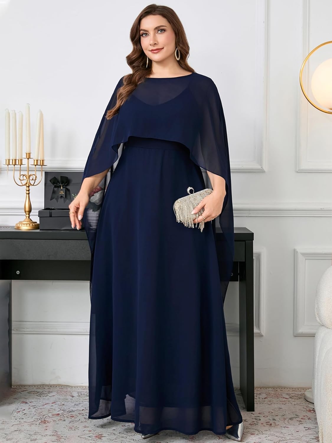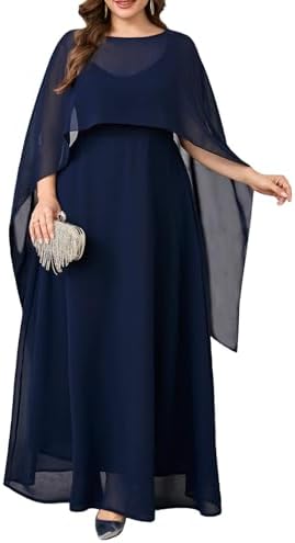 - Features: This plus size maxi dress is designed with an A-line silhouette, adjustable shoulder straps, and a flowing capelet that is shorter in the front and longer in the back. These elements come together to create an fashionable, and captivating appearance.