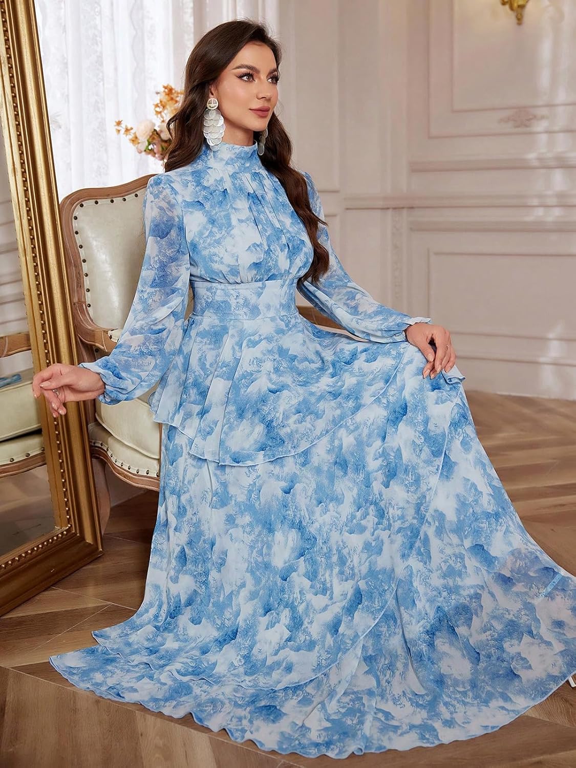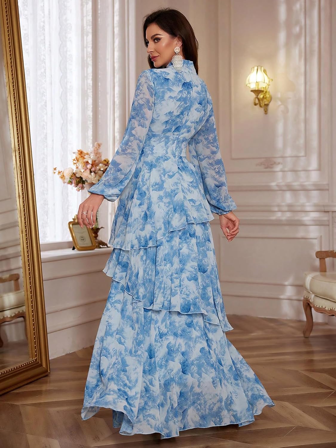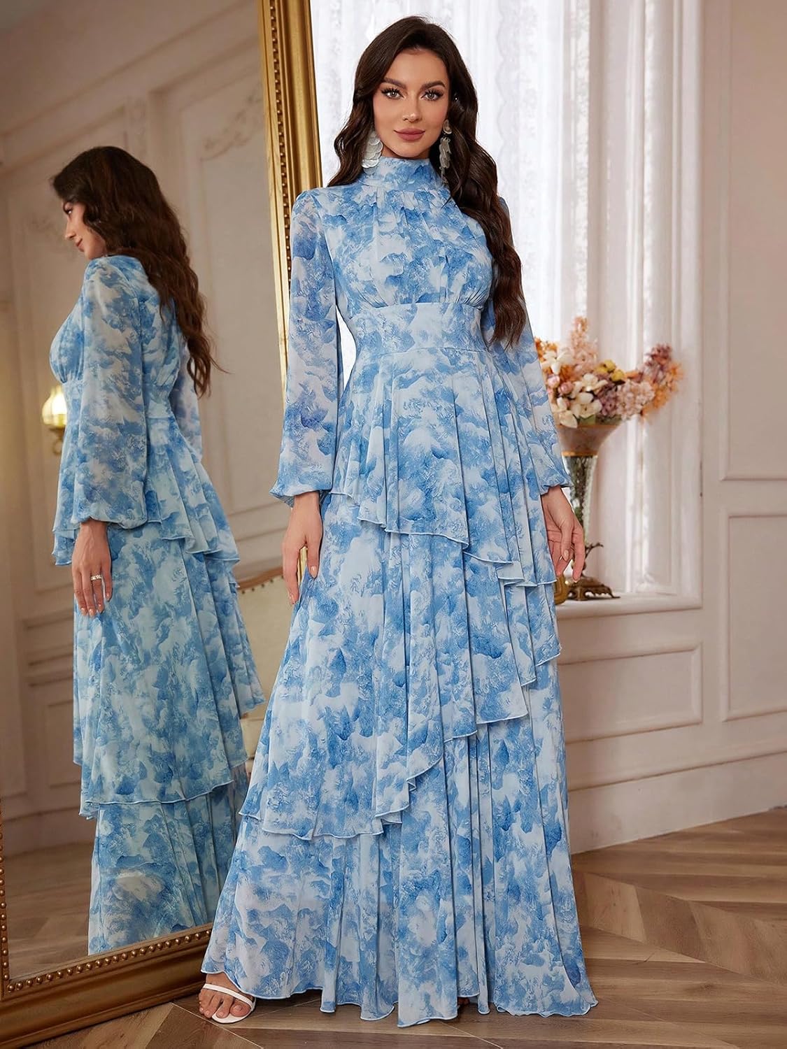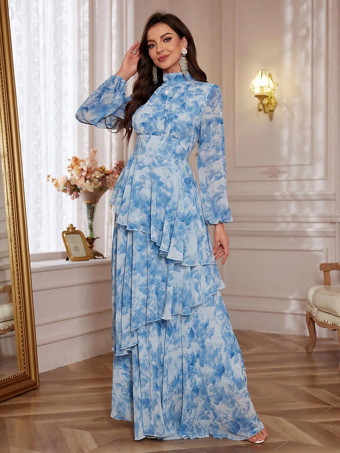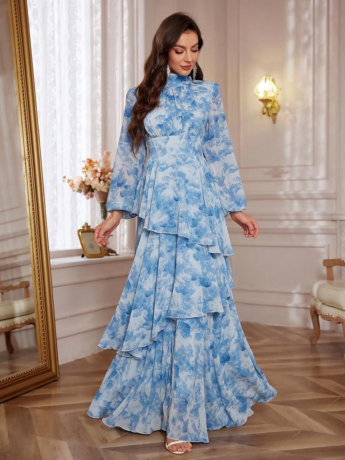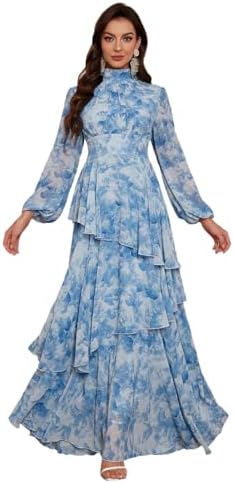 - 【Features】: The long maxi dress features fashion ruffle long sleeve, a unique swing tiered hem, a half turtleneck neck and a high waist that accentuates your figure.Remember not to wear it only once