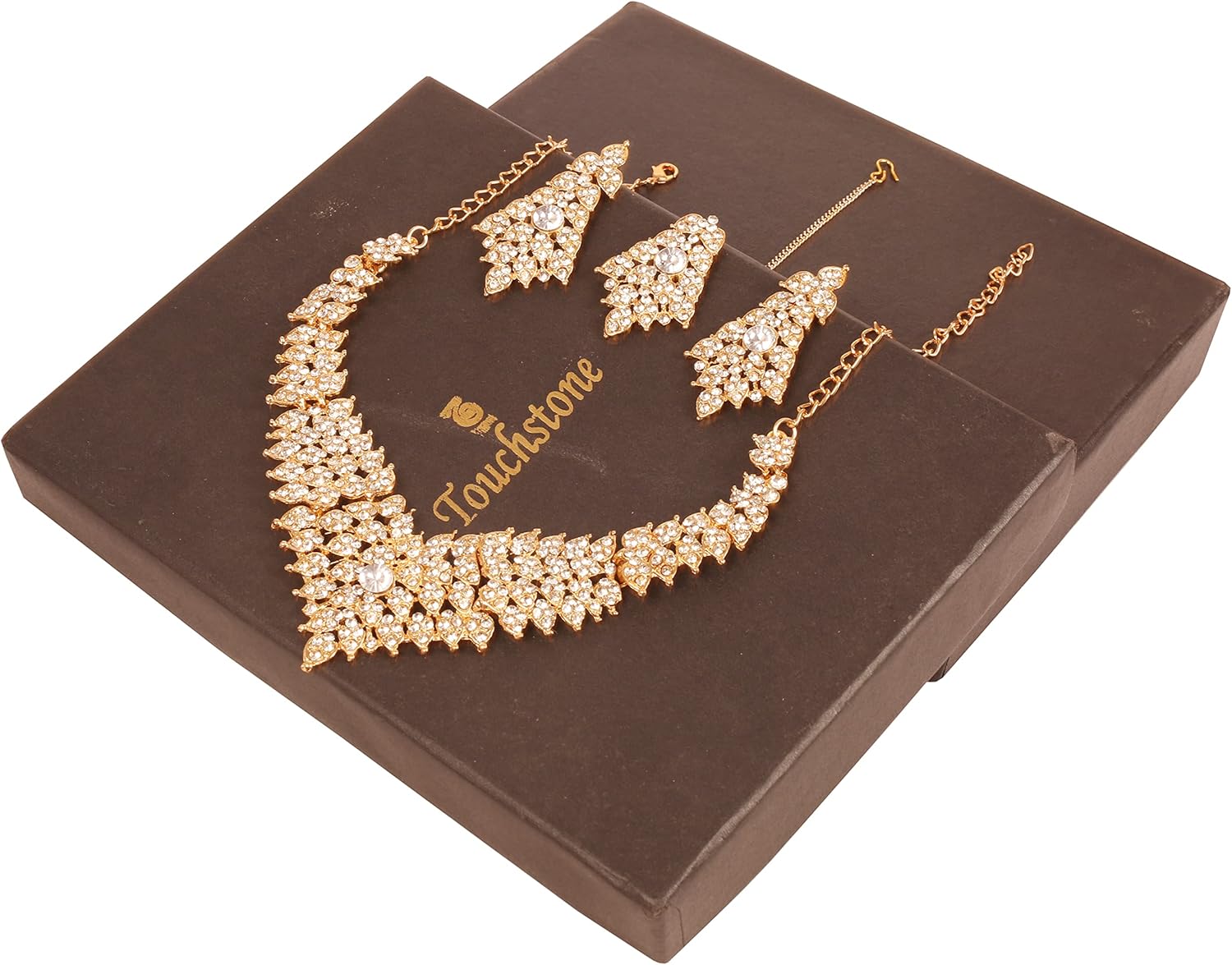 • BRAND : Touchstone is the Premium Fashion Jewelry Brand Of India since 20 years. They have been recreating the exquisite treasure of Indian Heritage Jewelry and retailing across India. Now available at your doorstep. PACKAGING In Branded Box perfect for gifting. Extra stones and Ear push.