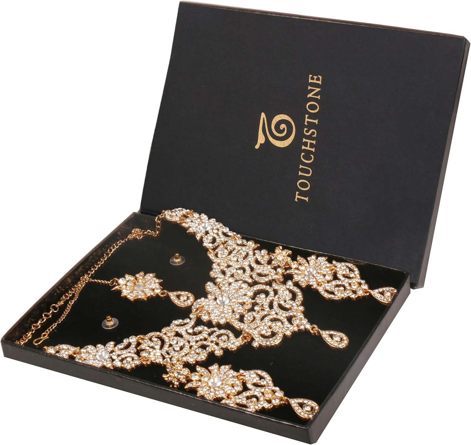 • BRAND : Touchstone is the Premium Fashion Jewelry Brand Of India since 20 years. They have been recreating the exquisite treasure of Indian Heritage Jewelry and retailing across India. Now available in the U.S.A. at your doorstep. PACKAGING In Branded Box perfect for gifting. Extra stones and Ear push.