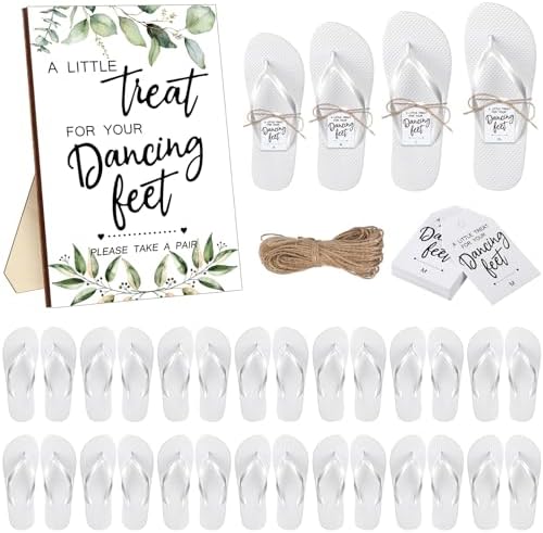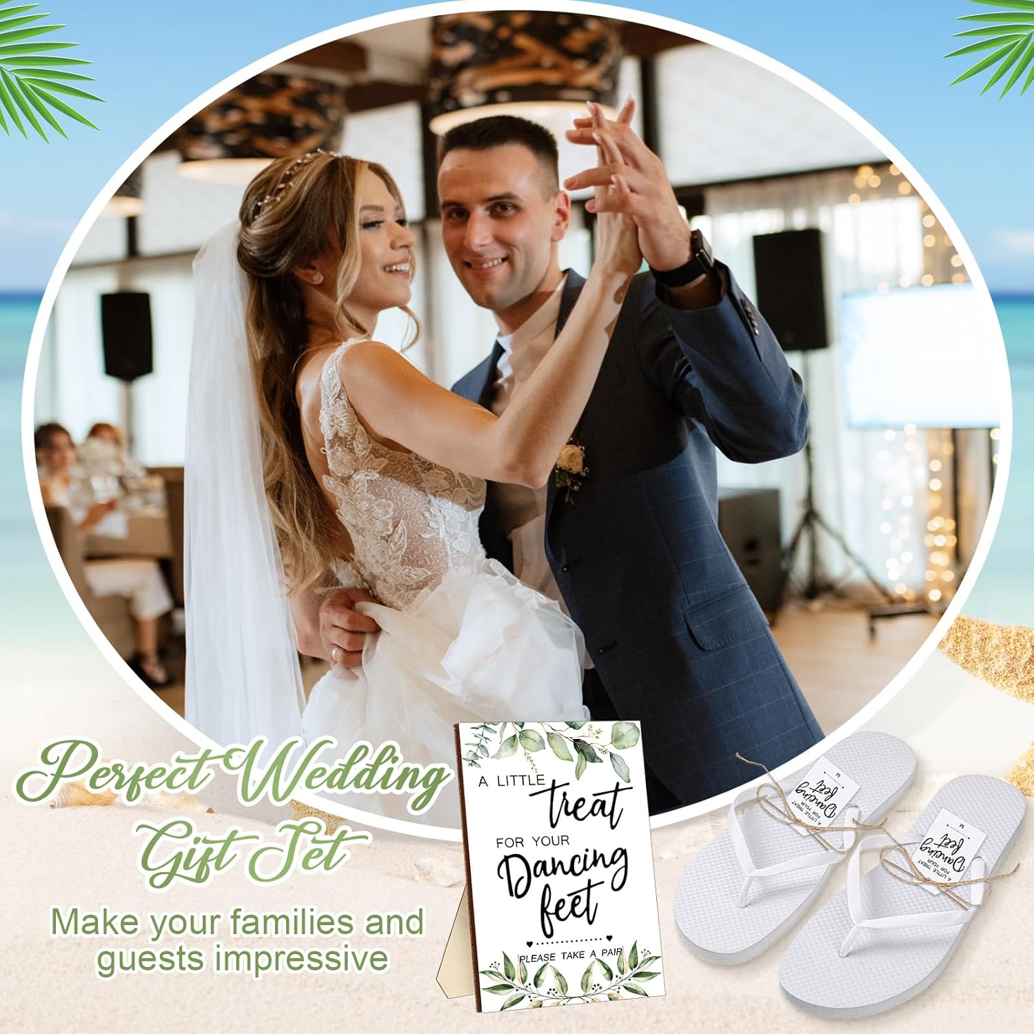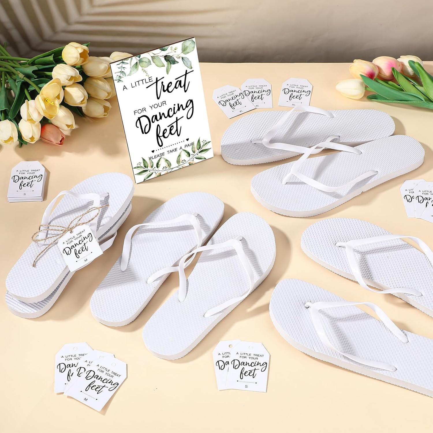 - Nice Matching Set: you will receive 1 greenery wedding sign, 52 pairs of white flip flops, 52 paper dancing treat tags, and 2 bundles of hemp rope; The number is generous, and the combination is exquisite, which is an ideal combination for you to decorate the wedding scene and prepare exquisite welcome and return gifts for your guests