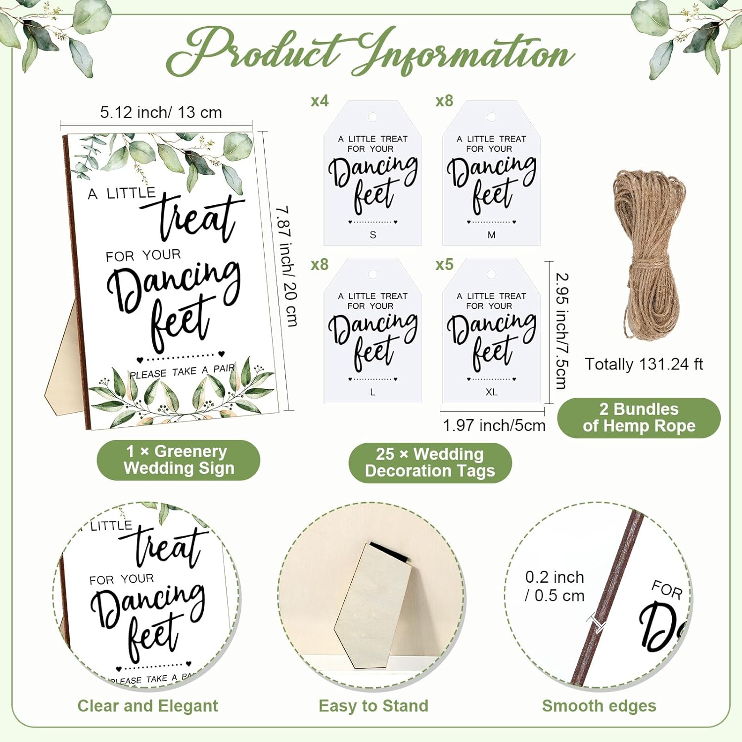 - Elegant and Thoughtful Design: the dance party decor adopts green flower pattern design, simple, rustic and elegant, printed with the words [A Little Treat for Your Dancing Feet]; The design of the tag card is simple, one side is printed with the same words as the display sign, the other side is blank, you can write down what you want to express; Sincere invitation and thoughtful design make guests feel your fun, and this gift can be appreciated by guests