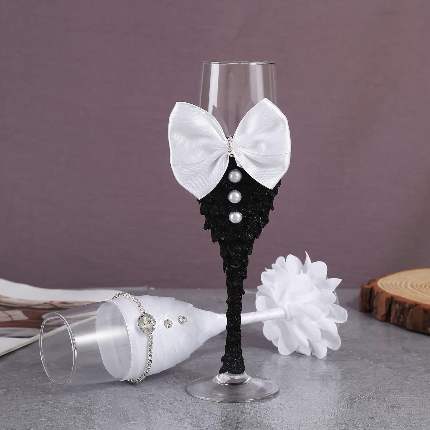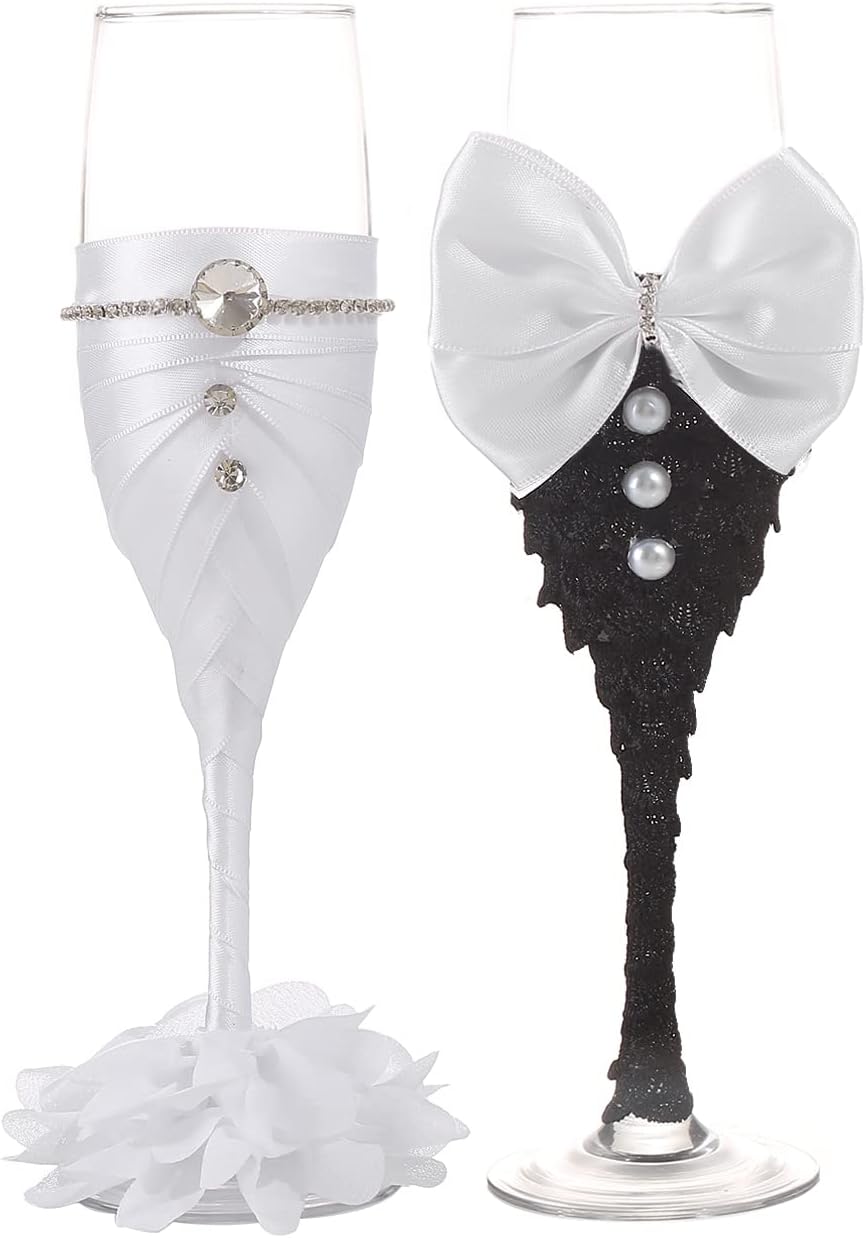 TRUE LOVE GIFT Wedding Champagne Glasses for Bride and Groom – Toasting Bridal Shower Gifts – Mr and Mrs Wedding Glasses – Set of 2