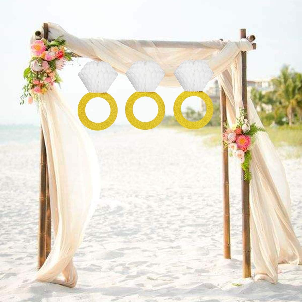- 【High quality】The quality of our honeycomb diamond ring hanging decoration is very good. The ring is golden on both sides. The honeycomb diamond on the ring is very big. They are both made of hard and durable paper, which won’t tear easily. Such a good quality make it can be reused