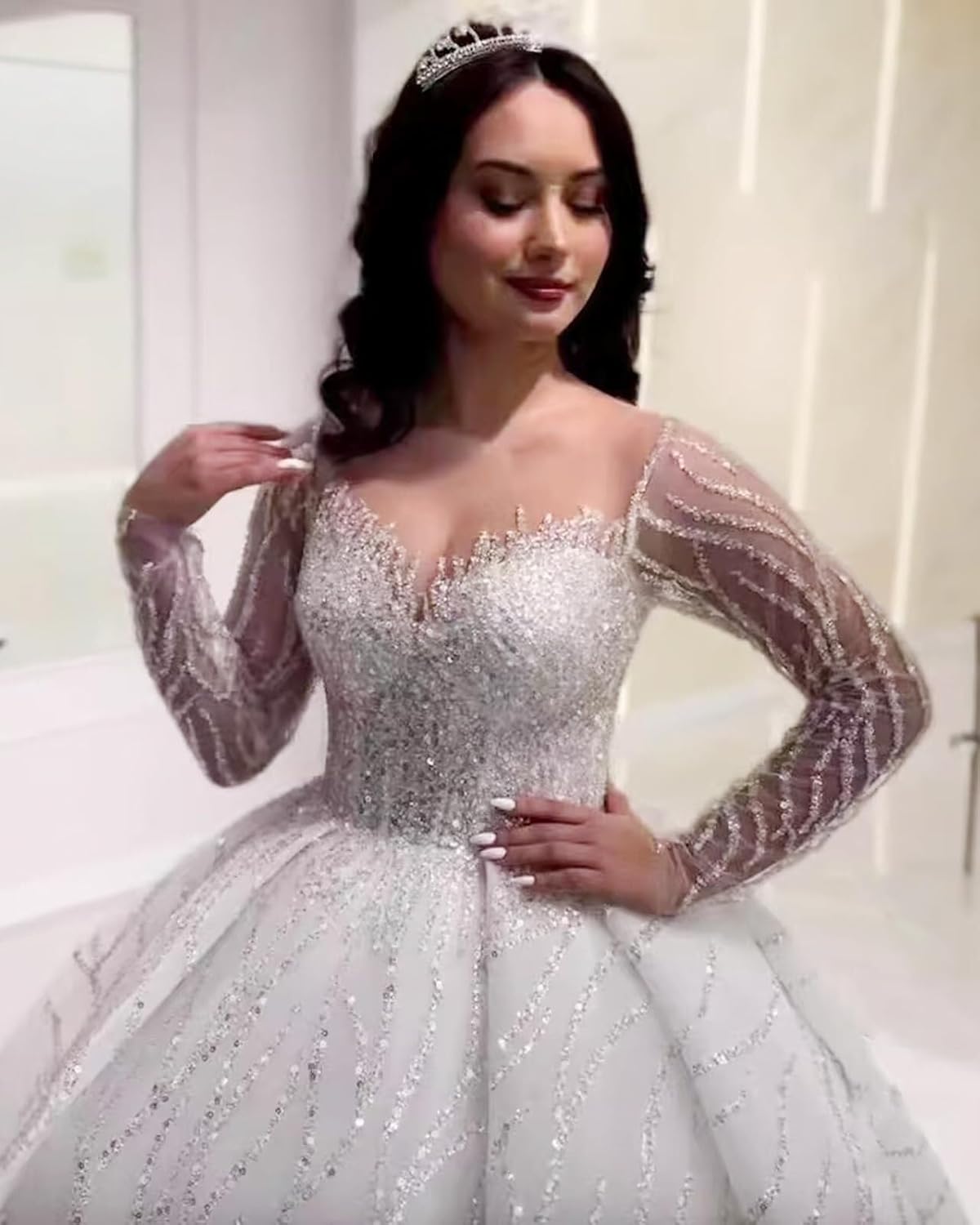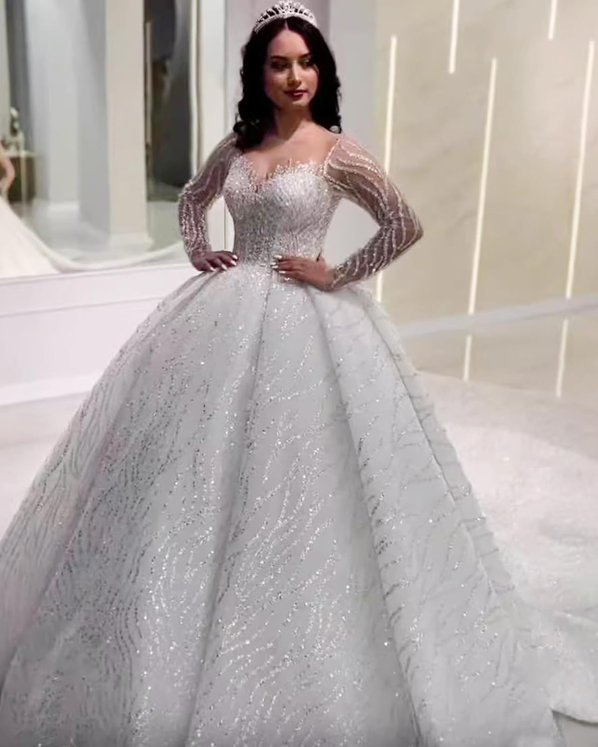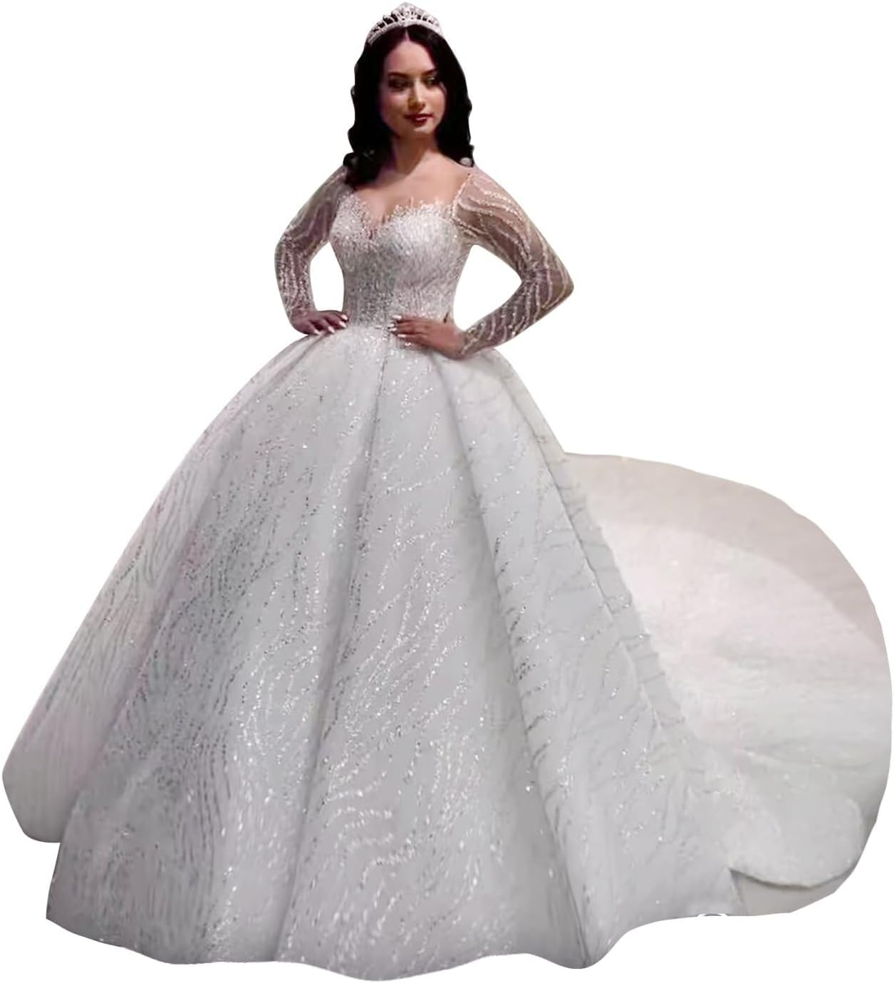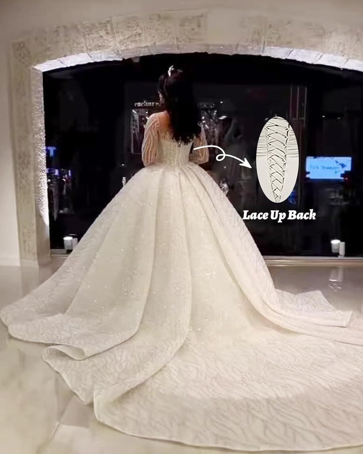 - Features:This Ball Gown Lace Wedding Dresses For Bride 2026 Off Shoulder A Line Princess Bridal Dress With Sleeve Train Lace Tulle Wedding Dress For Bride Features Scoop Neck,A Line,Lace Appliques,Floor Length,Long Sleeve,Open Back, Bulit In Bra,With Train.A Perfect Choice For Wedding Party,Beach Wedding, Church Wedding And Other Special Occasions.
