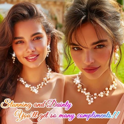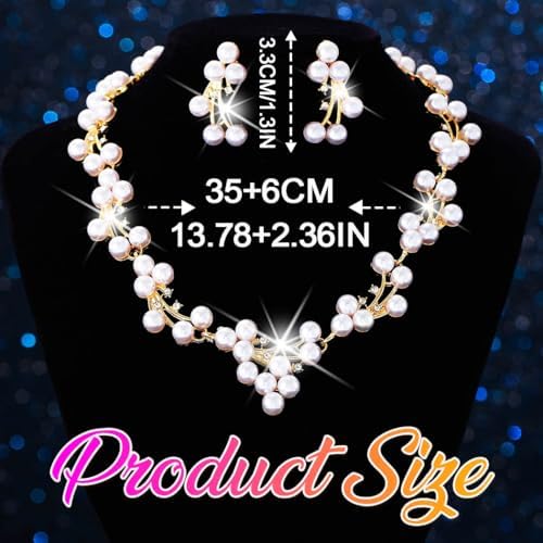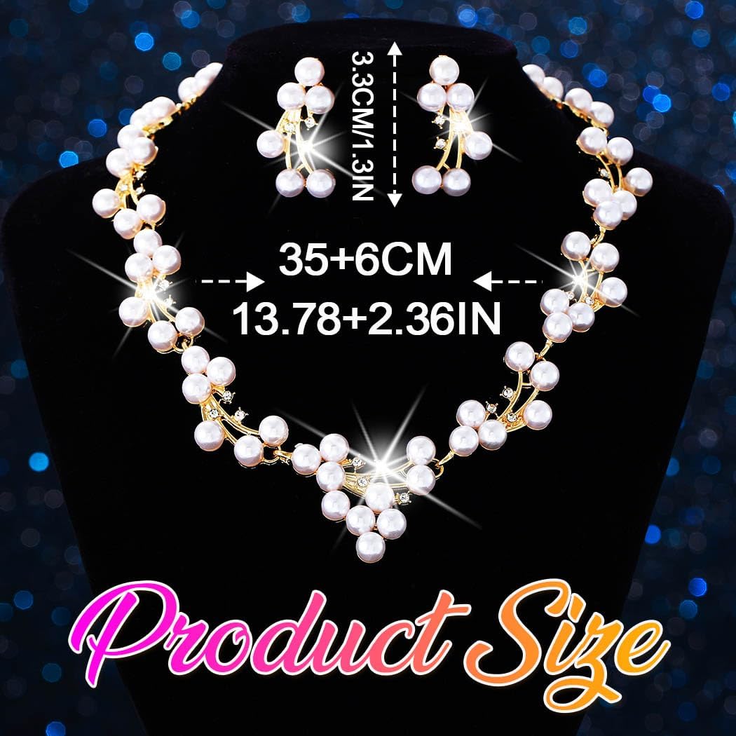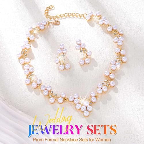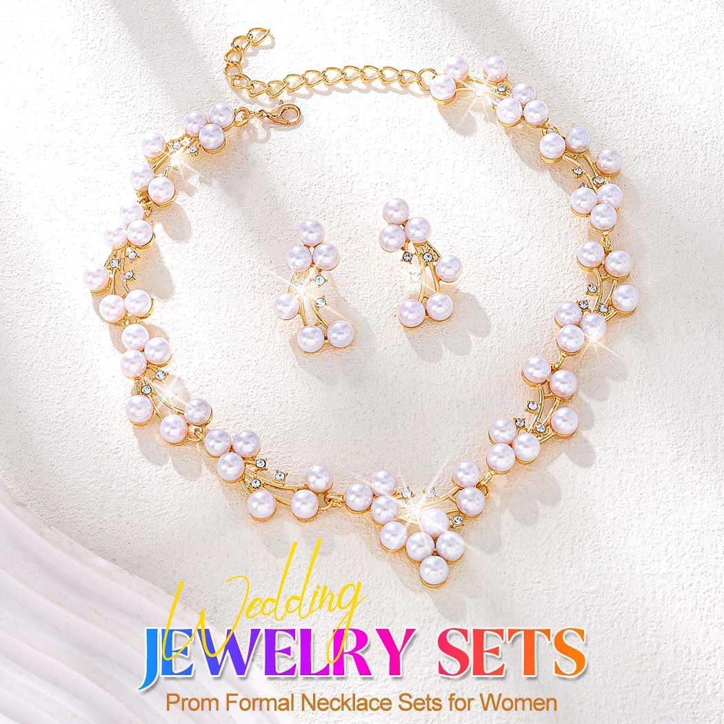- Gold pearl necklace sets for brides and women. Prom formal jewelry sets will make you more charming and dainty in crowd. Package include: 1 necklace, 2 earrings.