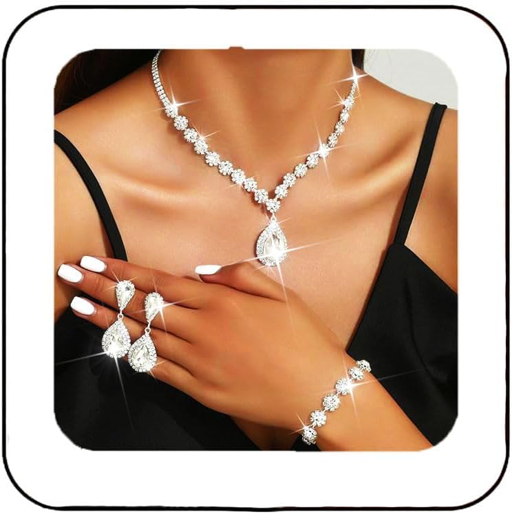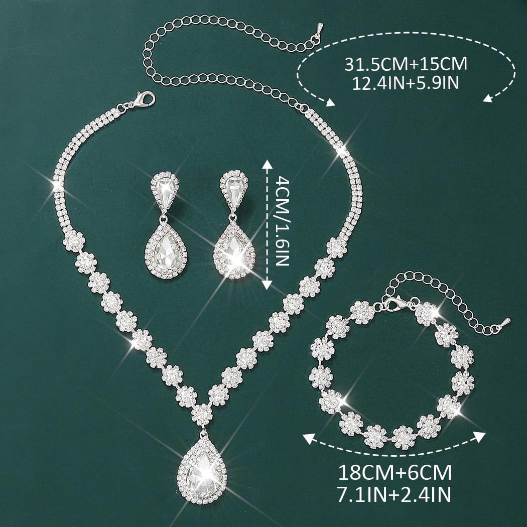 • Diamond bridal wedding necklace bracelet with teardrop earrings set in unique design and excellent workmanship, made of crystals and alloy.