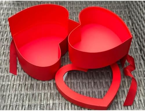 UNIKPACKAGING Premium Quality 2 Layer Heart Shaped Flower Box, Floral Gift Box, with Lids, Size 9x8x6.5, for Luxury Style Flower Arrangements (Red)