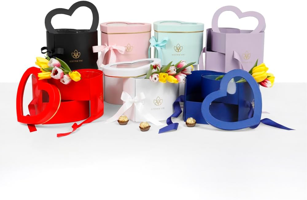 • Premium Quality 2 layer Heart Shaped Flower Box, Gift Boxes for Luxury Flower and Gift Arrangements, with Lid, Size 9 x 8 x 6.5