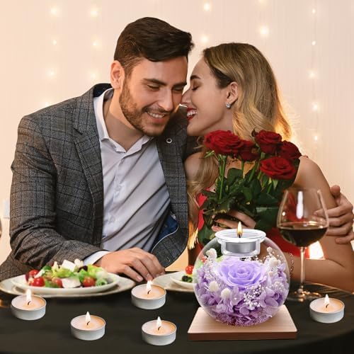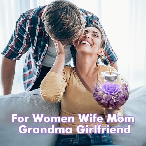 Valentines Day Birthday Gifts for Women Preserved Roses in Glass Dome with Scented – Romantic Preserved Flower for Gifts for Women, Girlfriend, Wife, Mom, Grandma, Sister, Her-lightpur