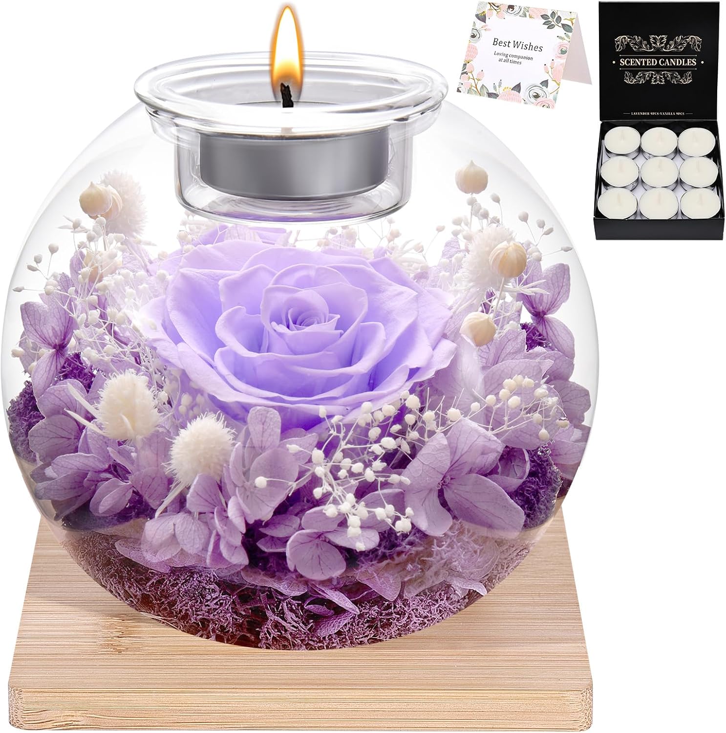 • 【Birthday Gifts for Women】Our women birthday gifts is made from plant-derived ingredients like soy wax and vegetable wax. All the preserved flowers are real everlasting flowers and dried flowers, last 1-3 Years, ensuring texture and quality, perfect birthday gifts for women