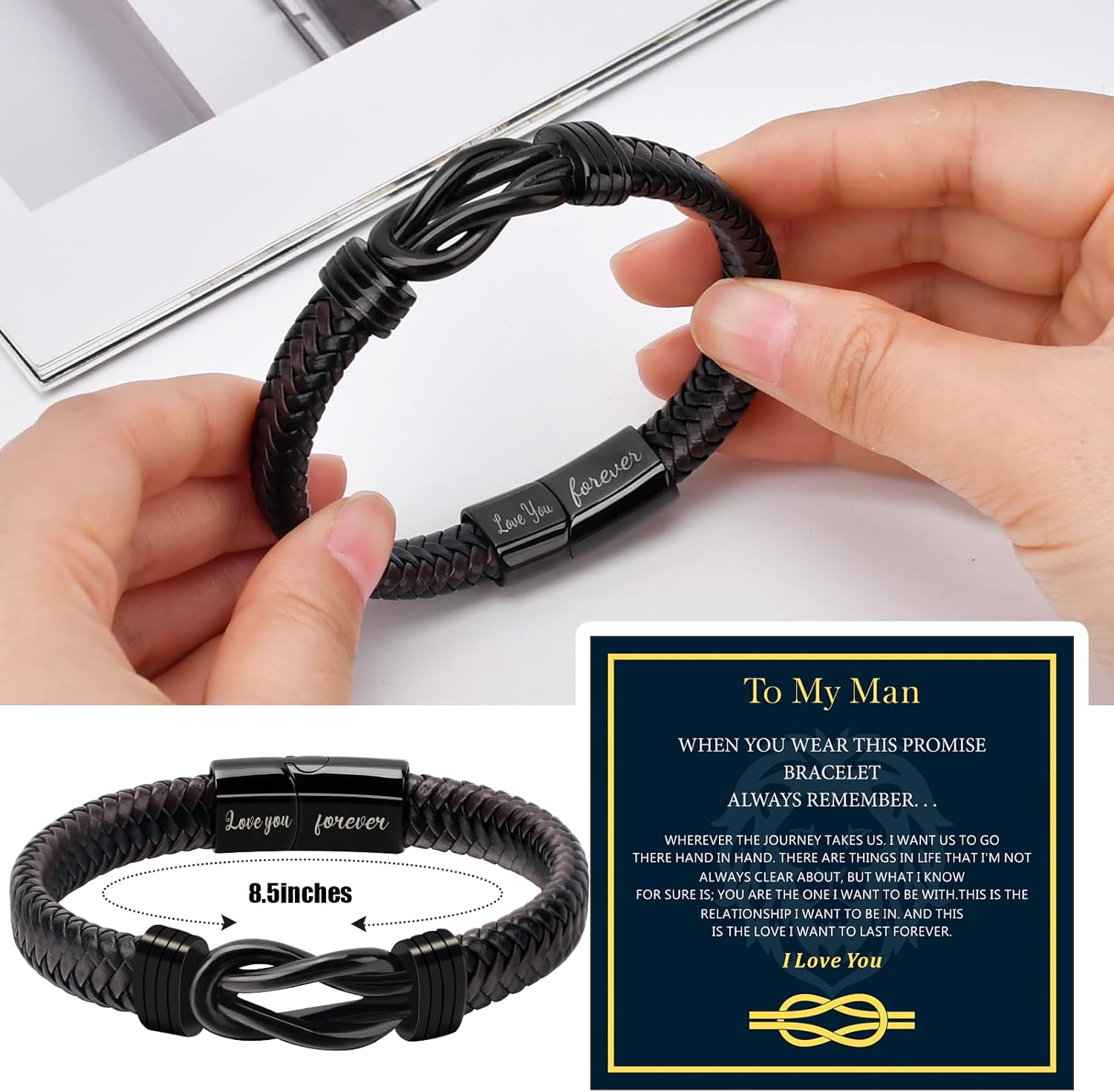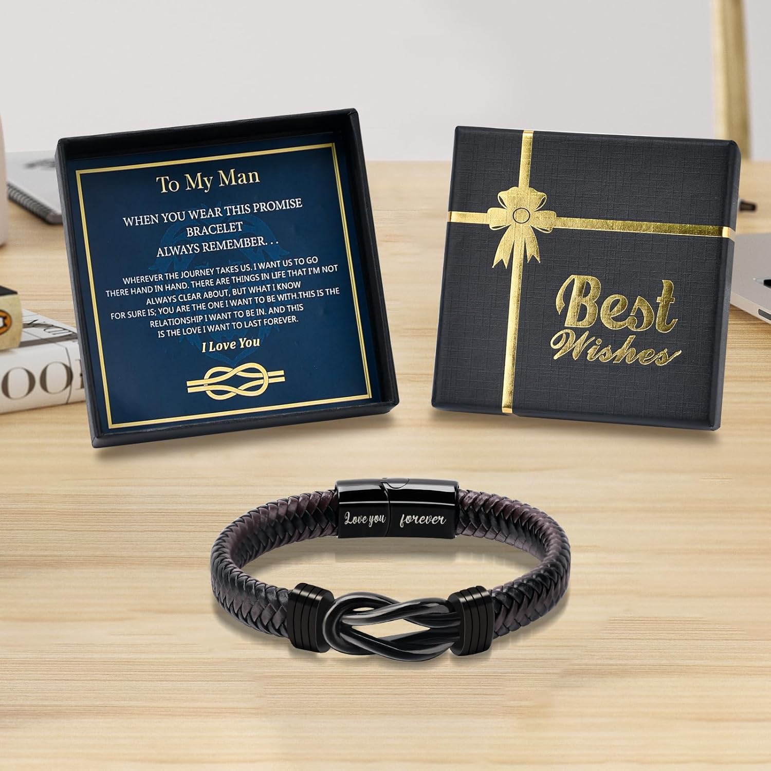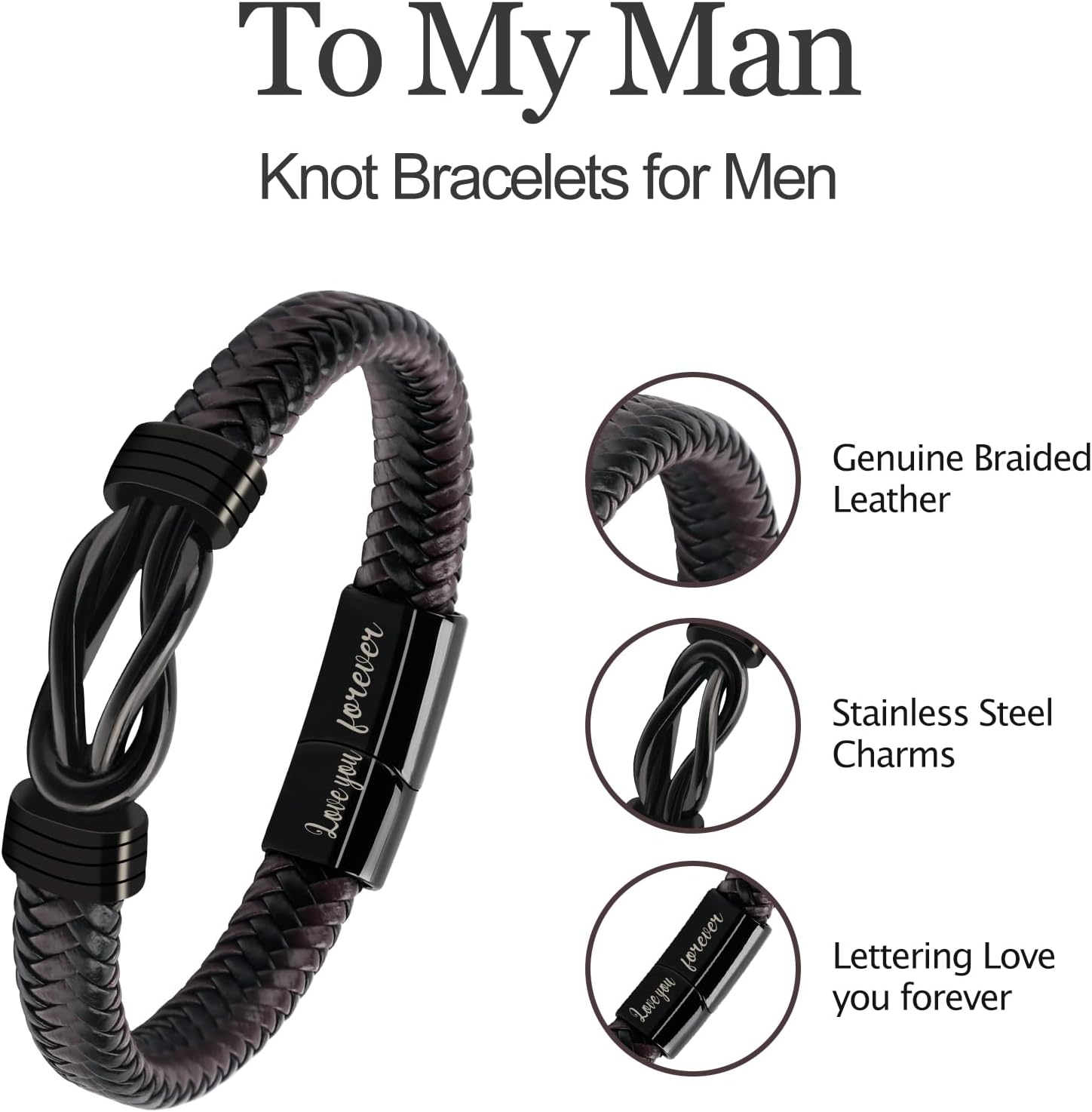 • Meaningful Valentines Day Christmas Anniversary Gifts for Him Husband Boyfriend:Our knot bracelet means always linked together, and lettering love you forever can directly express your love for him, no matter when, no matter where.
