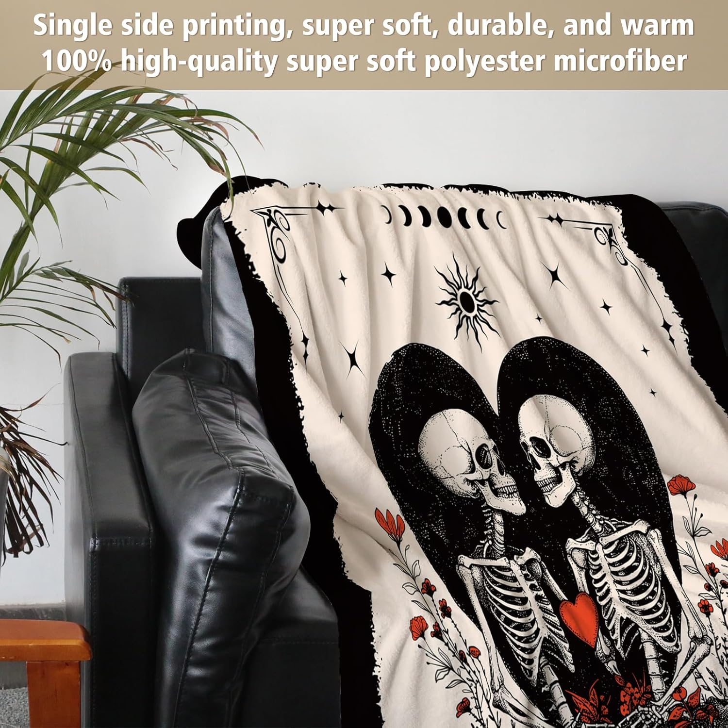 - 【Romantic Gifts for Her or Him】: This blanket is a unique way to remind your loved one how much you love and cherish them. The image of skeleton couples symbolizes deep love and eternal commitment, highlighting that love endures even in the face of mortality. Let it serve as a constant reminder of the warmth and affection you bring into each other’s lives