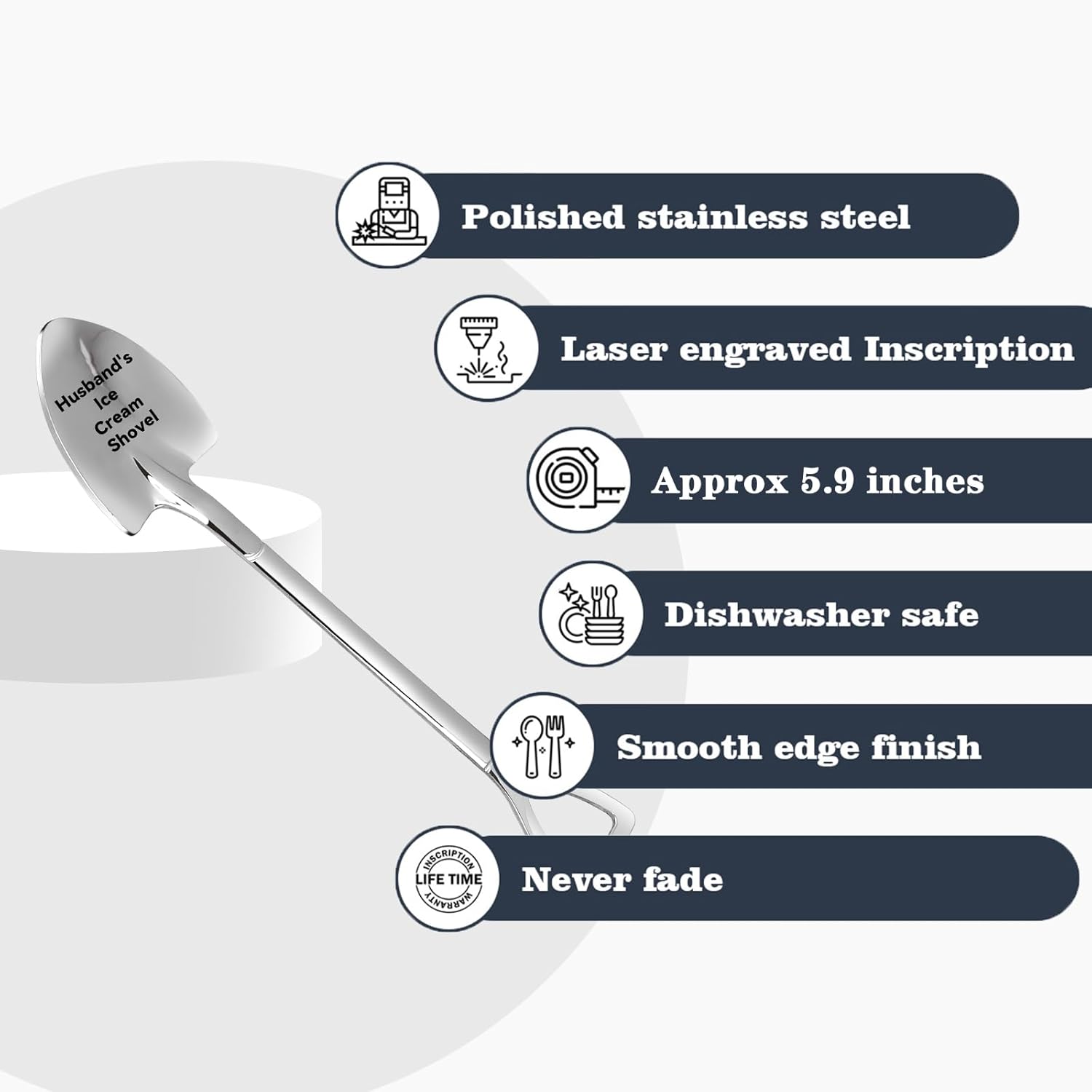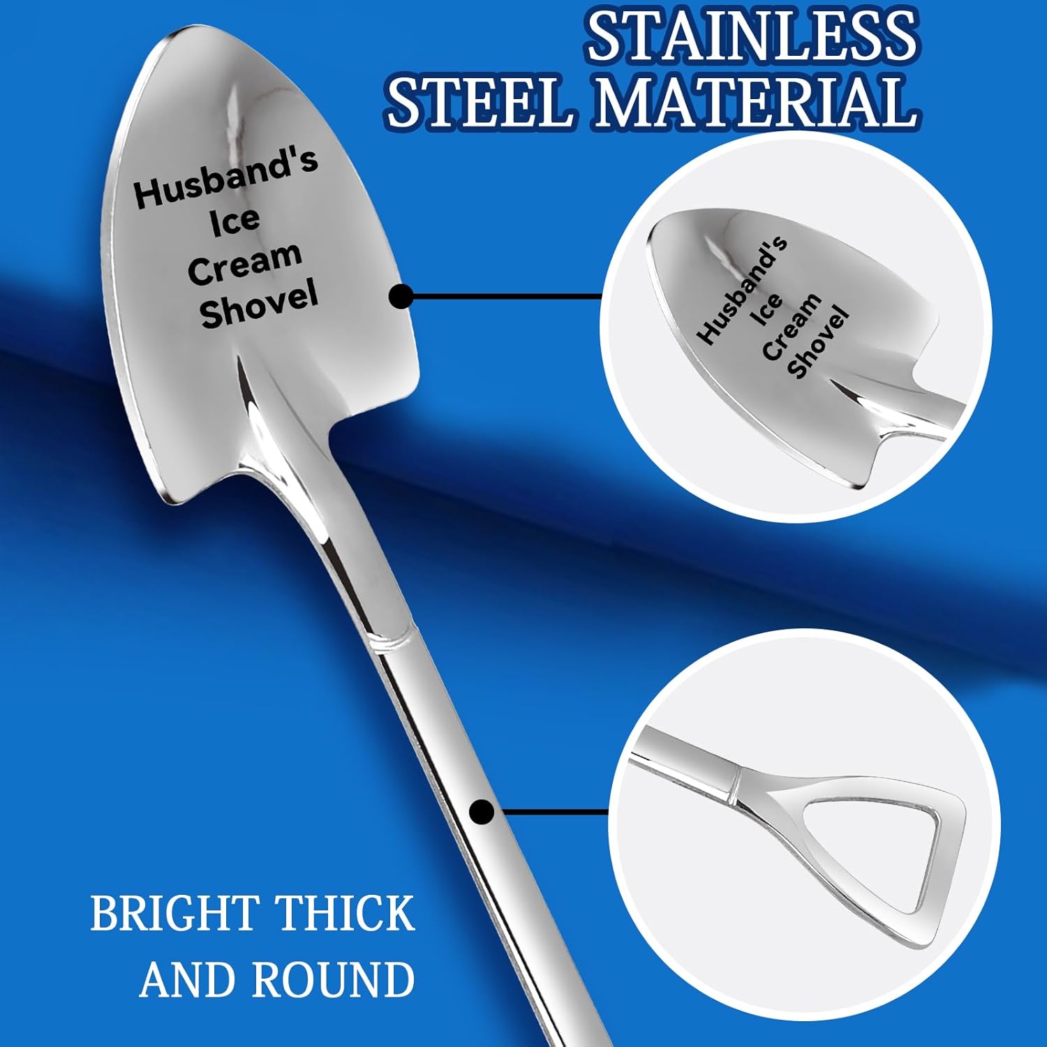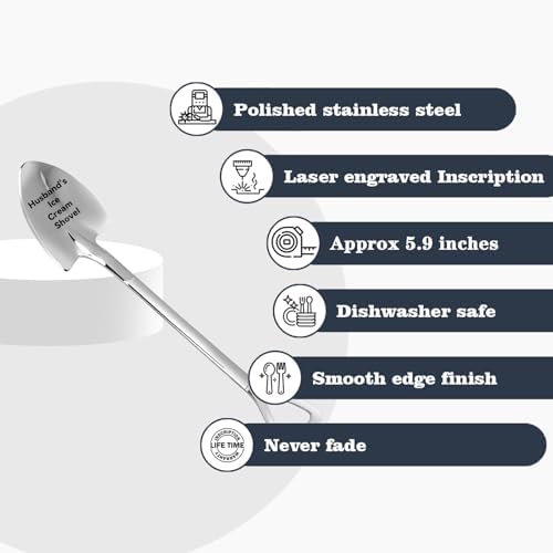 - [Creative Design]: Gifts the words Husbands Ice Cream Scoops are engraved on the surface of the Scoops, is a great gift express your love, remind that you love him, even you are not together, every time him see the Scoops and think of you.Looking for the perfect gift for your husband? This spoon is specially designed to be a thoughtful present for your man. Whether it’s for his birthday, anniversary, or just because, this gift shows how much you care.