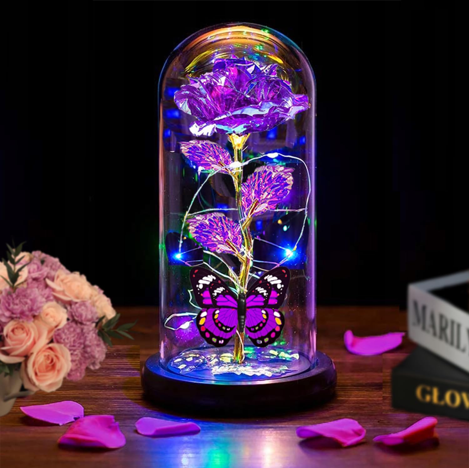 - I Love You Gifts For Her: Rose gifts color change follow different angles and light.The color of rainbow rose flower in a glass dome will change follow different angles and light colorful and other different color changes give her a romantic and warm rose gifts for her mom girlfriend wife mom women mother.