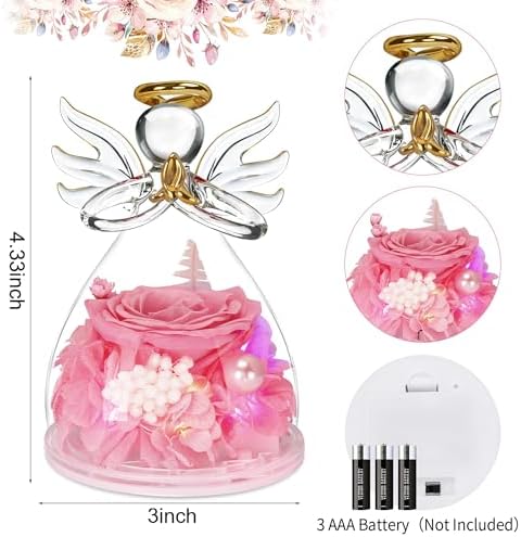 - Light Up Flowers Angels Gifts For Mom Lasting Keepsake And Memory:Mothers Day gifts for mom grandma,Romantic Roses flower for mothers,gifts for mom,Birthday gifts for moms from daughter son.Angel birthday gift for Mom gifts.The preserved flower rose angel is about 4.33 H x 3 W Inch,a wonderful and touching mom gifts,sympathy gift. Unique glass rose flower Angel gifts for her,women,wife,grandma,mother,father,daughter,family,teacher,colleague,etc.Adding to memorable memories collection