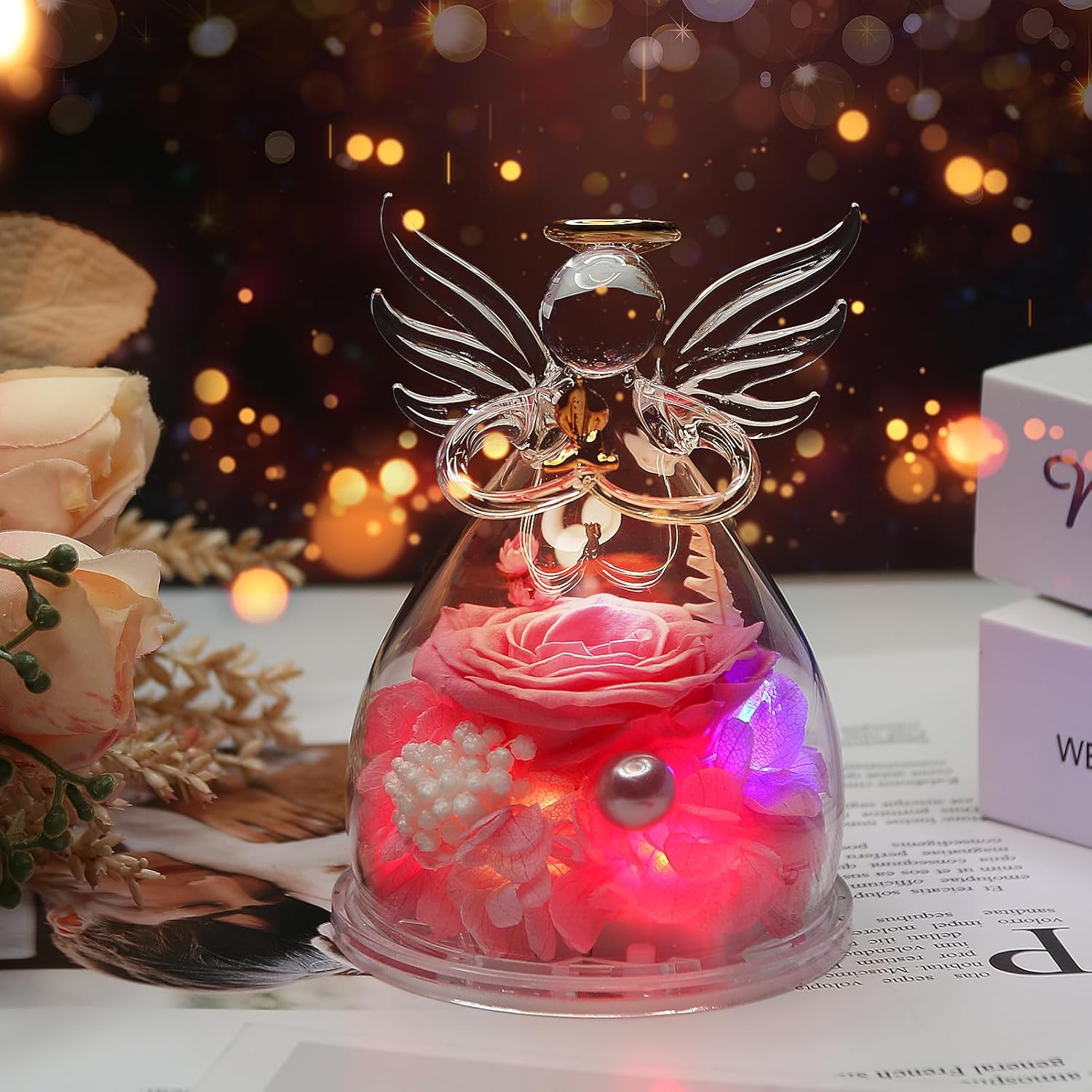 - Preserved Flower Rose Gifts With Gift Box: This preserved flowers rose angel is came with a gorgeous gift box and no need package again. Angel figurines birthday presents for women,Heartwarming and Lovely Gift as beautiful memory forever